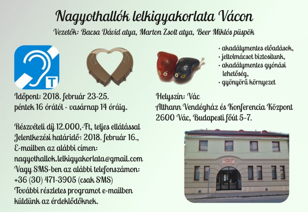 A lelkigyakorlat szervezője Lauer Tamás kistarcsai diakónus, aki maga is nagyothalló.