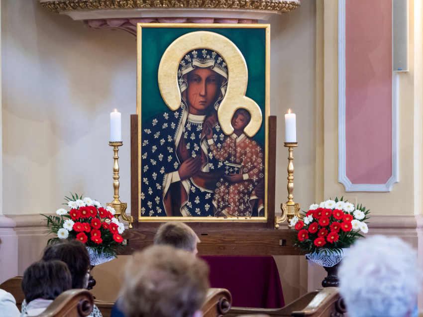 Szentbeszédében az irodaigazgató lelki zarándoklatra hívta a híveket Lengyelországba, Jasna Gorára, a Fényes-hegyre, ahol a pálos kolostor szívében a templom oltára fölött látható a częstochowai Fekete Madonna eredeti kegyképe. A hely igen rövid időn belül az egyik legnagyobb zarándokhellyé vált. A kép alapja egy 122×82 centiméteres nagyságú cédrusfa tábla. A festmény Szűz Máriát ábrázolja álló alakban, bal karjában a kis Jézussal. Mária a nézővel szembefordul, tekintete a szemlélő szemébe mélyed. Az arc jobb oldalán két párhuzamos vágás látható, melyet az orr vonalában egy harmadik keresztez. A nyakon szintén vágások láthatók, későbbi sérülések nyomai. A gyermek Jézus arca is a szemlélő felé irányul, bal kezében az élet könyvét, az evangéliumot tartja, jobbját pedig áldásra emeli.