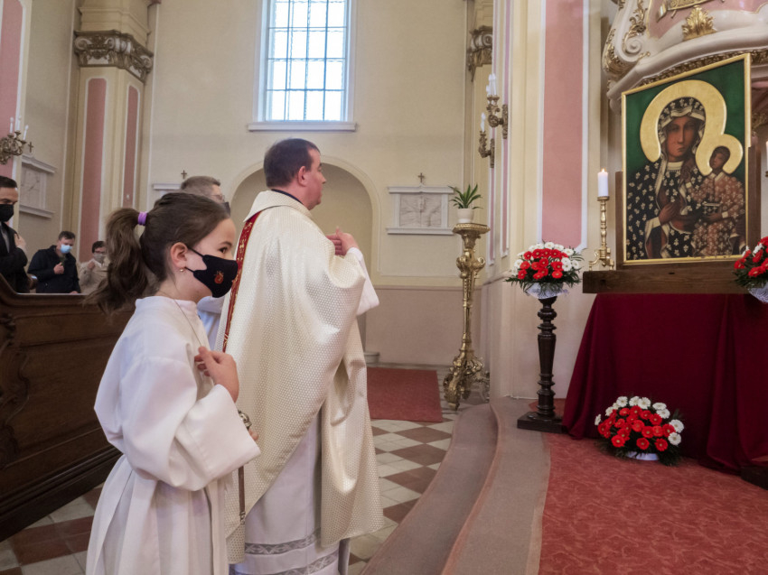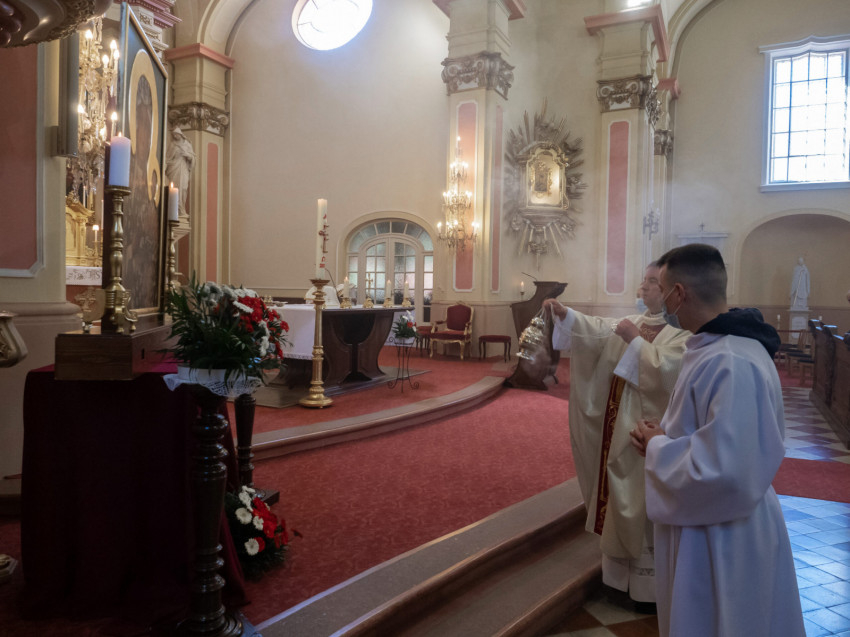 A szentmise kezdetén a plébános köszöntötte a kegyképet kísérőket és a kezdeményezést felkaroló lengyel nemzetiségi önkormányzat tagjait, majd elmondta, hogy a Fekete Madonna-kegyképnek ez a másolata szeptember 5-én érkezik meg Budapestre, az 52. Nemzetközi Eucharisztikus Kongresszus nyitó szentmiséjére, ahol ünnepélyes külsőségek között fogadják.