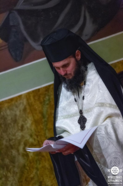 „Ábel atya tehát az Úr Jézus mennybemenetelének ünnepén lép a püspöki trónra. Krisztussal együtt emelkedik ő is.” Ha Krisztus el is tűnik szeme elől, ne keserítse el – biztatta az újszentelt püspököt a metropolita, hanem az apostolok útján járva még inkább erősödjön meg az örömben, hogy Krisztus nem hagyja el. „Az ő örömben való megerősödése, az ő Krisztussal való együtt emelkedése hozhatja meg az egyházmegye papjainak és híveinek is az emelkedést. Krisztussal együtt emelkedik.” De a látványos emelkedés nem feltétlenül jár belső emelkedéssel. „Érdemes elszakadni a látványtól, a látványosság keresésétől. Keleti egyházunknak, bár igen sok gyönyörű eleme van, az igazi gazdagsága belül van, sokszor láthatatlanul” – fogalmazott a szónok.