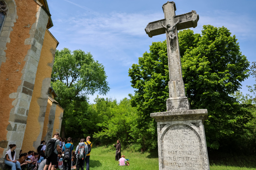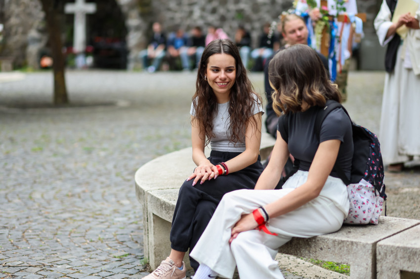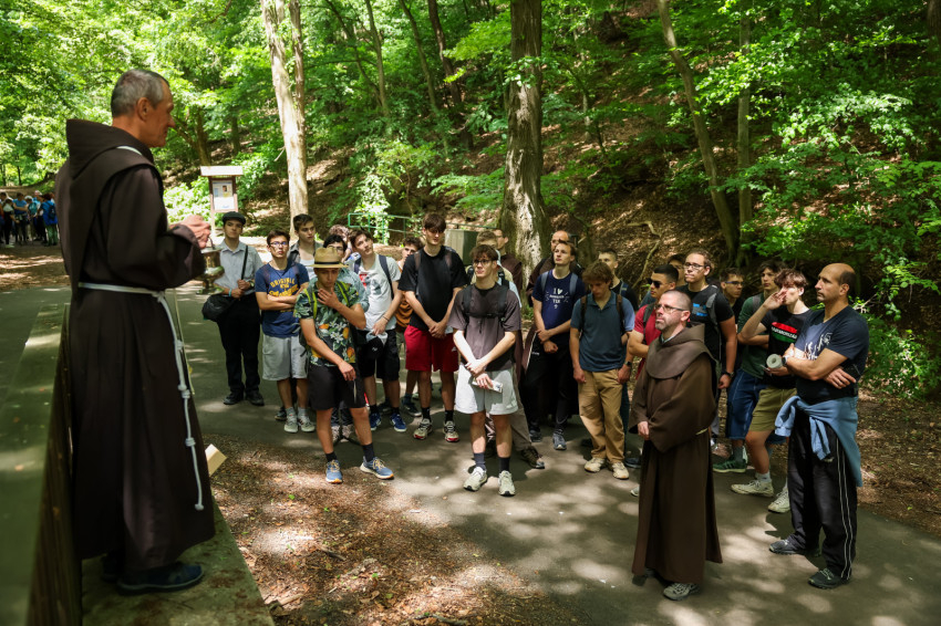 Ezt követően a nap programja lehetőséget adott a találkozásra, beszélgetésre. A diákság bejárta kegyhelyet – felkapaszkodtak a dombokra, kipróbálták a játszóteret, beszélgettek a fák lombjai alatt.