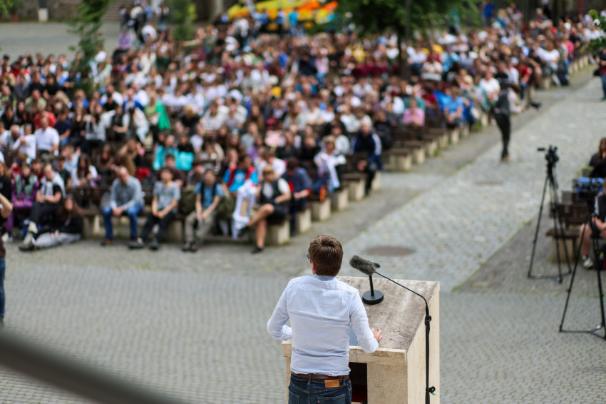 Szentlelket hívő ének vezette be az első tanúságtételt. Martí Zoltán televíziós és online újságíró, sportújságíró, a 777blog.hu alapítója szólt a fiatalokhoz.