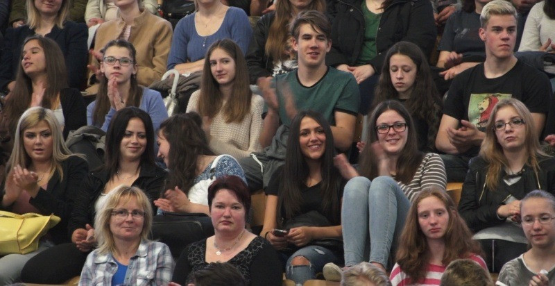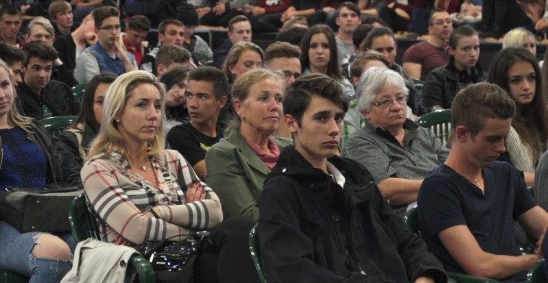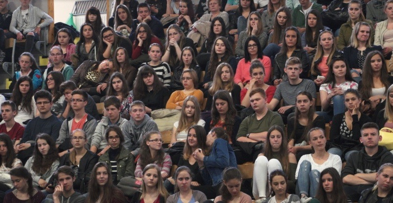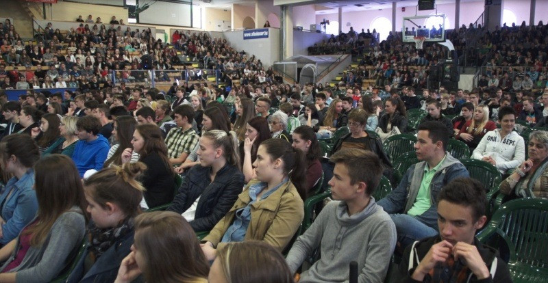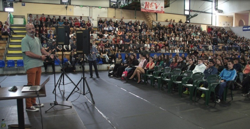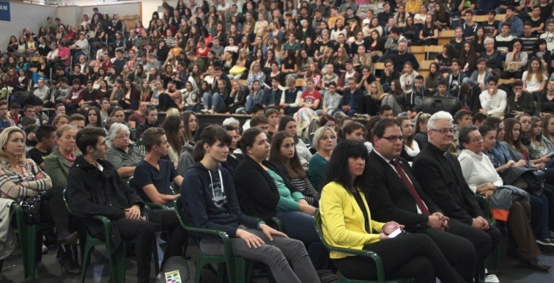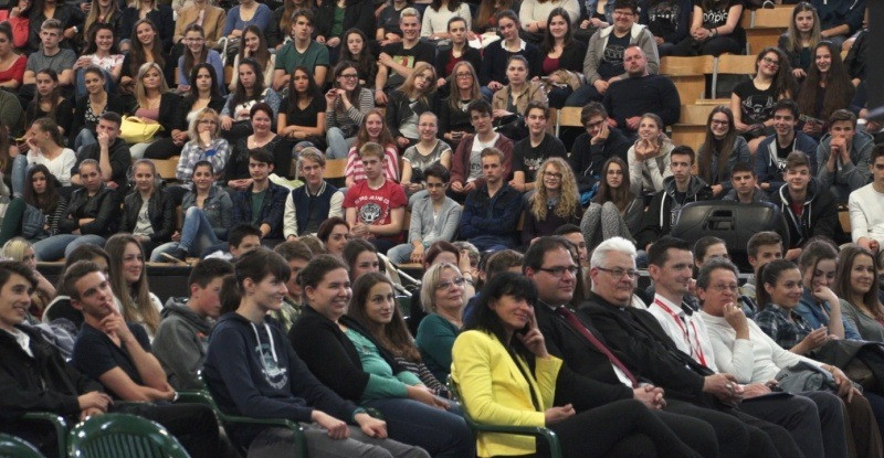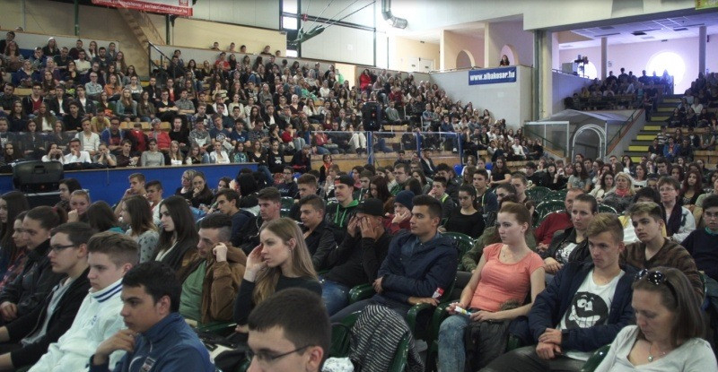 A program az a RÉV Sportcsarnokban kezdődött, amelyen mintegy 1400 fehérvári középiskolás vett részt. Zacher Gábor előadásában nyíltan beszélt a fiatalokhoz, ismerve az úgynevezett Z-generáció problémáit, a drogfogyasztás témájában pedig a döntés fontosságát emelte ki. Ismertette a szereket és azok hatásait arra az élettérre, amelyben a fiatalok élnek. „Nem szabad elfeledkeznetek arról, hogy a döntés a ti kezetekben van: ti lesztek ott a buliban, nektek fogják felkínálni, és nektek kell valamiféle döntést hozni. A jó döntés pedig a nemet mondás tudománya – amiben akkor és ott senki nem tud segíteni. Az alapján hozol döntést, hogy az addigi életed során mi okos és bölcs felnőttek milyen dolgokat pakoltunk a puttonyodba. Amit úgy hívunk, hogy értékrend, amit úgy hívunk, hogy keretrendszer, amit úgy hívunk, hogy példakép, amit úgy hívunk, hogy jövőkép” – fogalmazott Zacher Gábor.