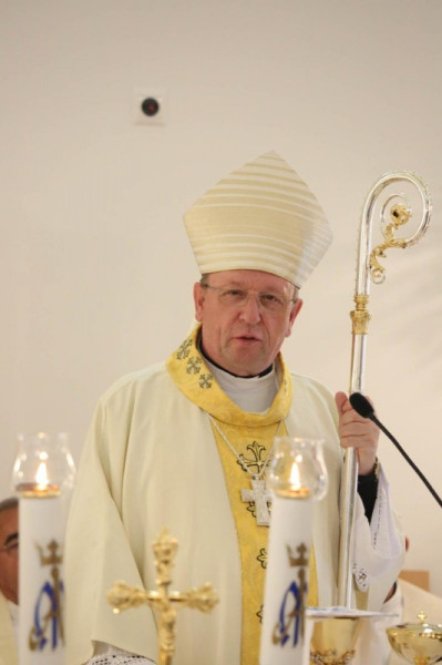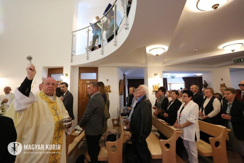 Palánki Ferenc megyéspüspök a szentmise homíliájában többek között a kápolna védőszentjének, a Fájdalmas Szűzanyának példáját emelte ki, aki a kereszt alatt állva hittel, kérdés nélkül elfogadta az Atya akaratát. „Szent Jánossal, a szeretett tanítvánnyal együtt mi is ott állunk a kereszt alatt, akik figyelünk Jézus és Mária szavára” – hangsúlyozta a főpásztor. „Amikor Jézus meglátta, hogy ott áll anyja és az a tanítvány, akit szeretett, így szólt anyjához: »Asszony, íme, a te fiad!« Azután így szólt a tanítványhoz: »Íme, a te anyád!« És ettől az órától fogva otthonába fogadta őt az a tanítvány” (Jn 19,26–27). Ezután a püspök hozzátette, amikor felszenteljük a zarándokházat és kápolnát, mi, tanítványok a házunkba fogadjuk Máriát. „De hol van az igazi otthonunk?” – tette fel a kérdést a főpásztor. „Önmagában kevés az, ha befogadjuk őt a házunkba, a szívünkbe akkor, ha mindez nem határozza meg az éltünket. Mert a boldogság ott talál otthonra, ahol az emberek szeretik, segítik embertársaikat, beszélgetnek, megtörik a kenyerüket egymással, és Isten közelségében élnek” – zárta beszédét a főpásztor.
