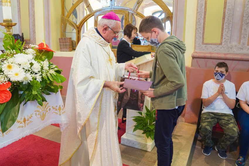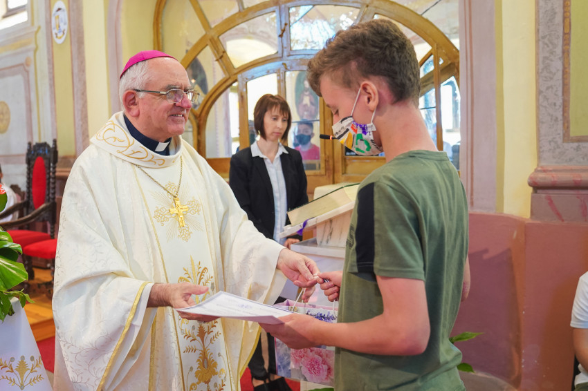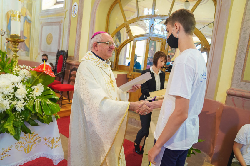 Ezután püspöki elismerő oklevelet adott át Varga László kaposvári megyéspüspök Benke Fanni 8. osztályos tanulónak kiváló tanulmányi eredményéért, példás magatartásáért és szorgalmáért; majd áldozatos munkájuk elismeréséül Sárközi Istvánné takarítónak és Farkasné Pulai Katalin iskolatitkárnak.