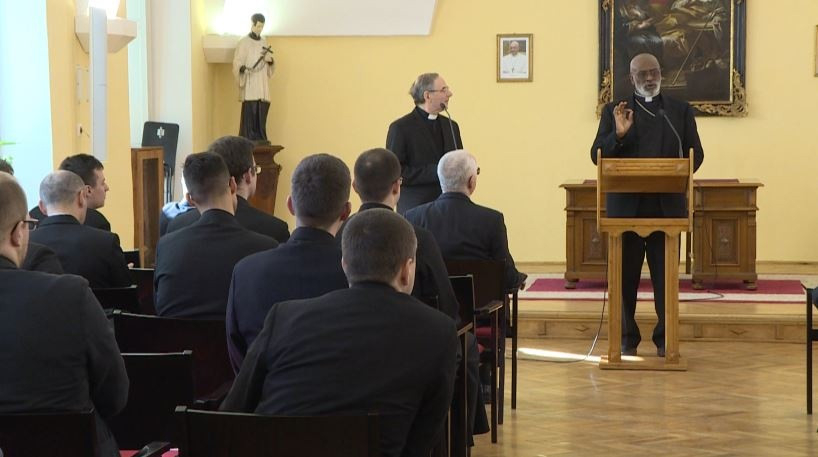 Az afrikai főpásztor a szentmisét követően előadást tartott a kispapoknak. Elmondta: 67 éves, 41 éve pap, és „szentelési ikertestvére” Ternyák Csabának. 13 éve érsek Ghána fővárosában. Az egyenlítő mentén fekvő ország – mint mondta – a „világ közepe”; területe és lakossága mintegy háromszorosa Magyarországénak. Az ott élők 13 százaléka katolikus; a lakosság 70 százaléka keresztény felekezetekhez tartozik. Jó az ökumenikus kapcsolat és a vallásközi párbeszéd; vannak az országban muszlimok, de békésen együtt élnek.