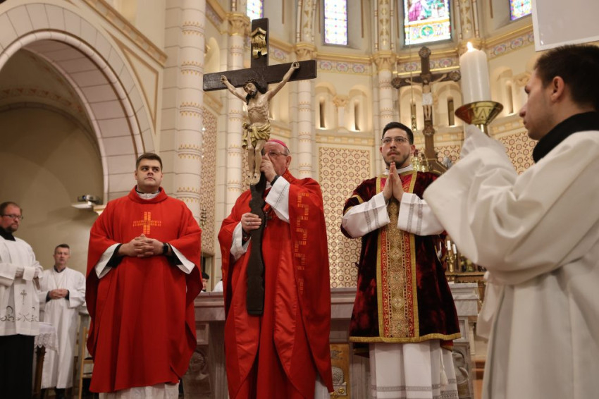 Keresztúti ájtatosságot vezetett a Nagyboldogasszony-főszékesegyházban Bábel Balázs érsek nagypénteken.