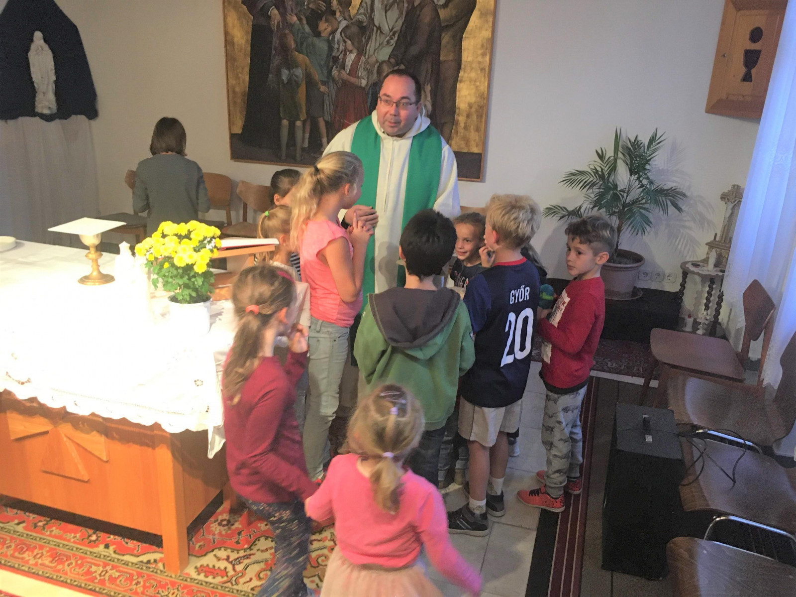 A nap szentmisével folytatódott, melyen Sárai-Szabó Kelemen OSB atya, a győri Szent Mór Bencés Perjelség perjele rutinosan kötötte le a mocorgók figyelmét, így szép közös élmény lehetett a családoknak. A vacsora és a kisgyermekek altatása utáni esti beszélgetés pedig remek alkalom volt arra, hogy a házaspárok aktuális élethelyzetéről, örömeiről, nehézségeiről szóló beszámolókat hallgatva a többieket jobban megismerjük, és így egyre jobb közösséggé kovácsolódjunk.