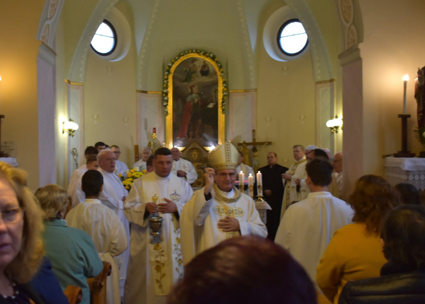 Hasonló gondolatokat fogalmazott meg a templom megáldása és megszentelése előtt Schönberger Jenő szatmári megyéspüspök, aki ezen az esős, de gyönyörű szép vasárnapon hálás szeretettel kérte Isten áldását mindazokra, akik adományaikkal és munkájukkal támogatták a felújításokat, majd örömmel köszöntötte az ünnepségen részt vevő Tuomo T. Vimparit, a bukaresti nunciatúra ügyvivőjét, a környék- és megyebeli római katolikus plébánosokat, akik mellett az Ugocsára jellemző hagyományok szellemében Elek Arnold Zoltán halmi református lelkipásztor is részt vett.