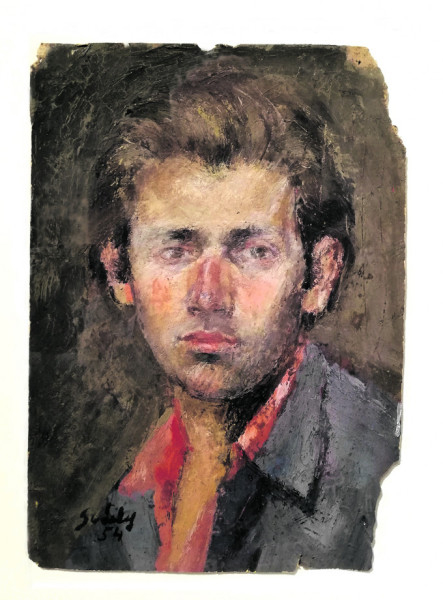 Elszánt, de nem elbizakodott fiatalember néz ránk a képről; megvan még minden hajszála, kiegyensúlyozottság, határozottság tükröződik a szemében. (Nem úgy, mint Székely Bertalan hasonló önarcképén, amely a Nemzeti Galériában látható. Arról a festményről kőkemény arccal, gőgösen néz ránk a fiatal, még pályája kezdetén álló, önbizalommal teli festő. „Ezt én mondom, a csíki székely” – hangoztatta időnként Székely a müncheni évfolyamtársainak.) A Műcsarnok a tavaly, nyolcvanöt éves korában elhunyt festőművésznek Sváby Lajos arcai címmel rendezett kisebb, de jelentős kiállítást az alagsori termekben.