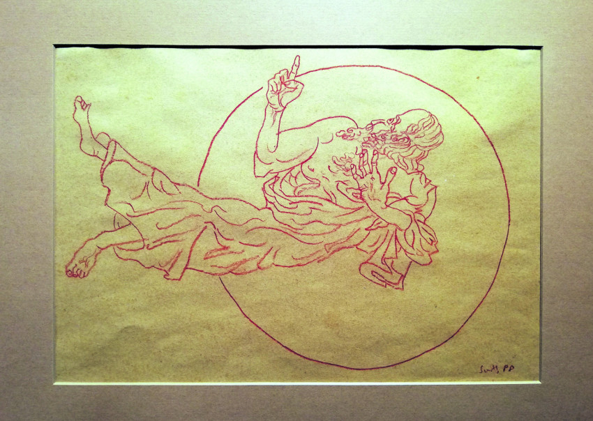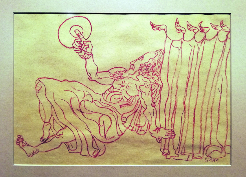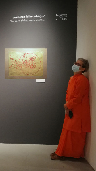 A Sváby-kiállításon nemcsak különböző technikákkal készített önarcképek láthatók, hanem meglepetésként (hiszen a plakáton erre semmi nem utal) bibliai illusztrációk is a Teremtés könyvéhez. A sárga papírra vörös krétával készített huszonkét rajz 1989-ből származik; a teremtés, a bűnbeesés, Káin és Ábel története mozgalmas, drámai kompozíciókon elevenedik meg.