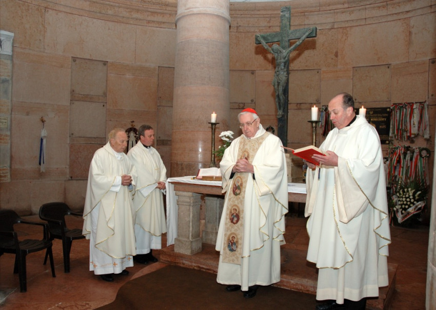 Sajnos a Mikszáth Kálmán téri piarista kápolnába, ahol ötven évvel ezelőtt pappá szentelt Szabó Imre püspök úr, már nem mehettem el, de hálatelt szívvel, mécsessel és virággal kisétáltam a sírjához a Farkasréti temetőbe.
