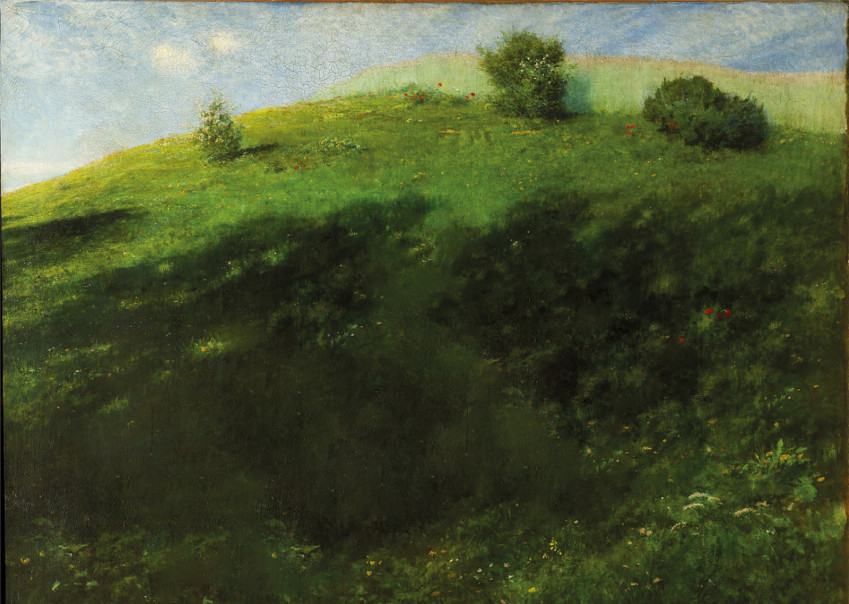 Az interneten kevésbé barangolók számára kiválasztottam néhány különösen sokat mondó plakátot. Az első Izsáki Márton munkája, aki férfias minimalizmusával maradandó üzenetet küld nekünk az általam Majális parafrázisnak elnevezett alkotásával. Ez a „maradj otthon” plakát nem egyéb, mint Szinyei Merse Pálunknak az 1896-os millenniumi kiállításon méltán világsikerűvé lett, és 1901-ben, Párizsban aranyérmet nyert festménye, a Majális, pontosabban annak nagyon beszédes, sőt ürességével kiáltó mostani mása, egy majdnem majális. Amelyről azonban fájdalmasan és célzatosan hiányoznak az eredeti képen megörökített, az ifjúságnak, a szépségnek, a szabad természetnek és az együtt elköltött finomságoknak örülő modellek: az egykori müncheni diáktársak. Itt csak a piknikezőhely üres pázsitjával nézhetünk farkasszemet.