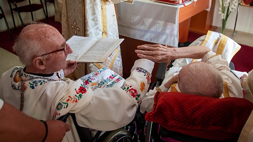 Közösen, meghitten és csöndben ünnepelték vasmisés jubileumukat, szentelésük hatvanötödik évfordulóját az otthon kápolnájában.