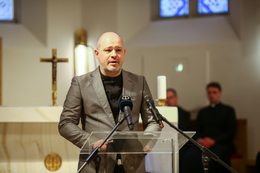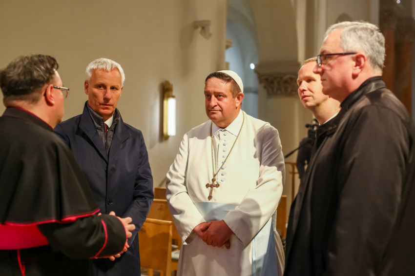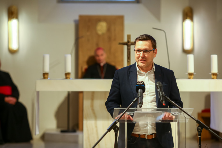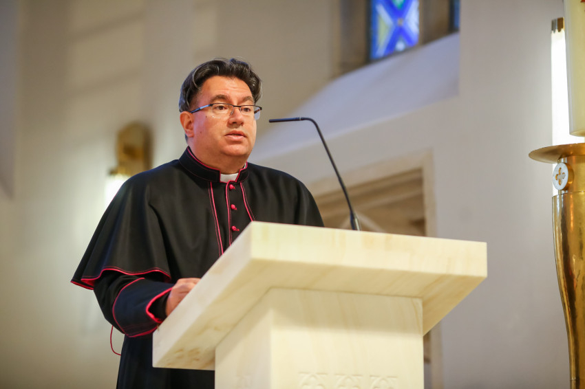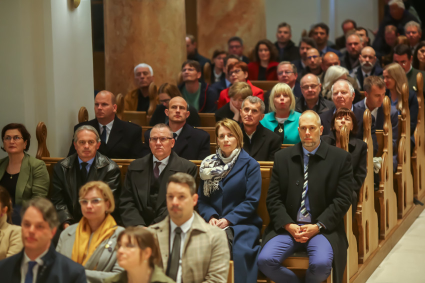 A kedvezőtlen időjárás miatt az ünnepi beszédekre a székesegyházban került sor. A vendégeket Takács István általános helynök, főszékesegyházi plébános köszöntötte.