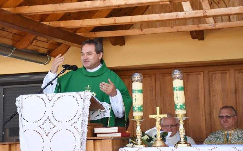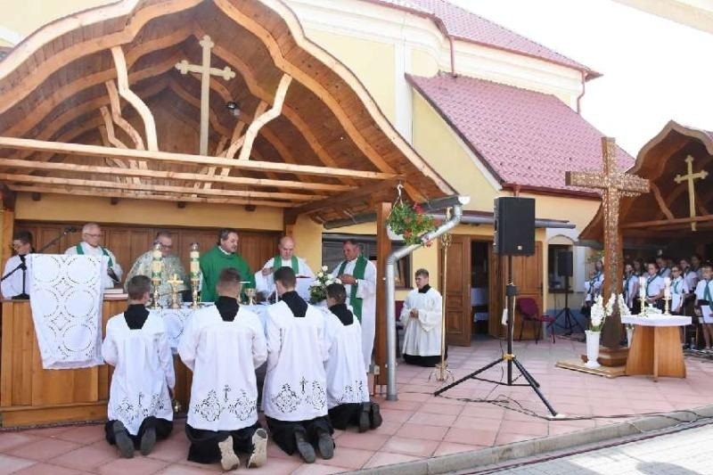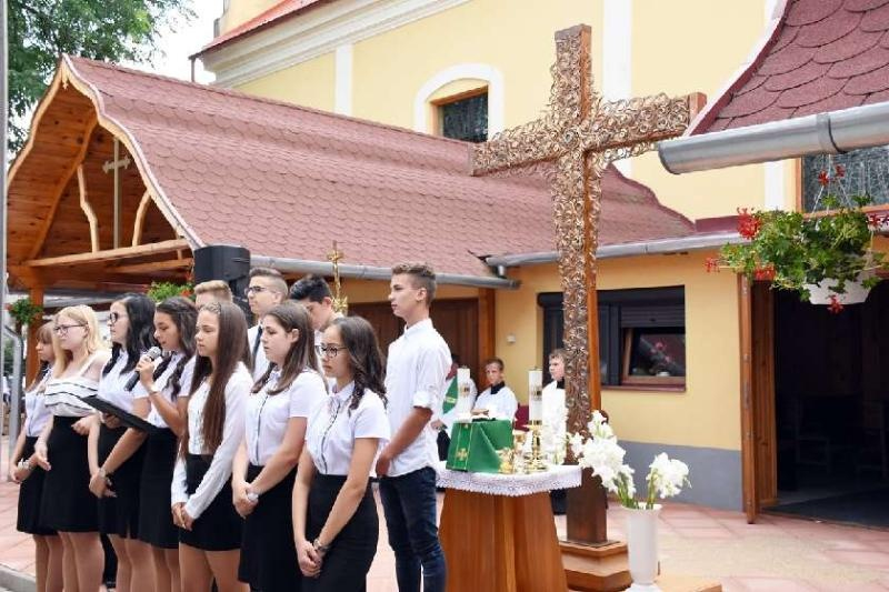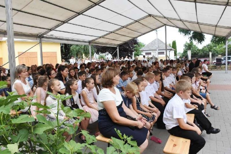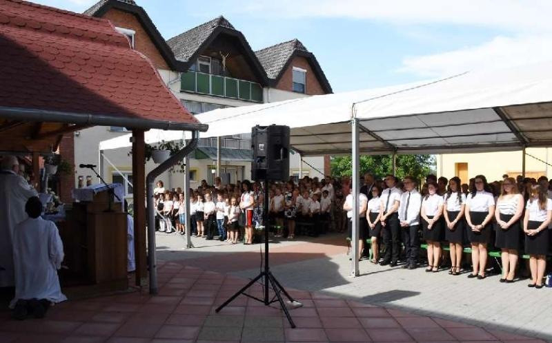 Június 17-én, vasárnap délután tartották az Ajaki Tamási Áron Katolikus Iskola, Óvoda és Bölcsőde tanévzáró szentmiséjét a kereszt előtt, melyet Felföldi László általános püspöki helynök, nyíregyházi plébános mutatott be.