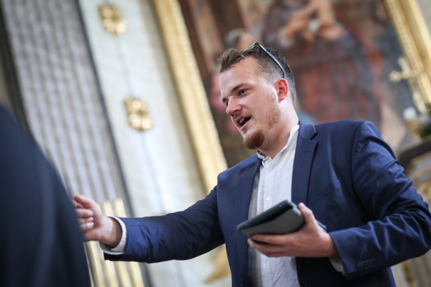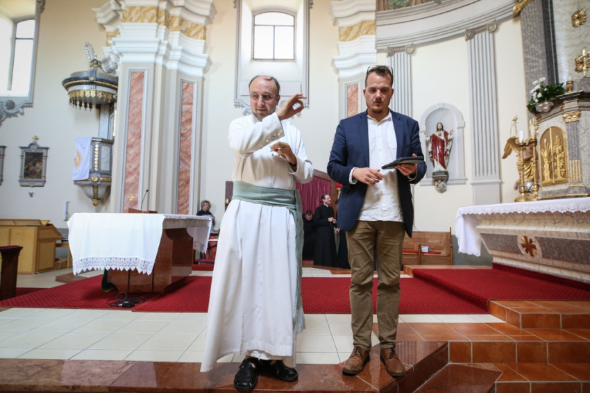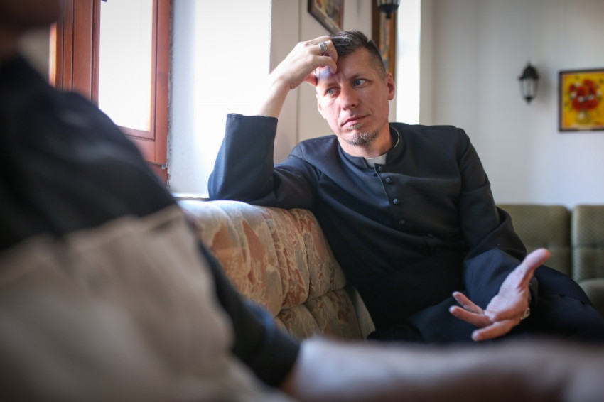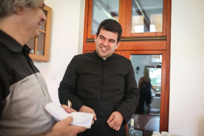 Pár perc múlva a nagyszerű kávét szürcsölgetve, amelyet vendéglátóink készítettek nekünk, már a közösségi teremben ülünk a plébánossal. Tizenöt éve pap, ide nyolc évvel ezelőtt került, Egyek az első plébánosi helye, meséli. Először kissé megszeppent a feladattól, és megkérdezte lelki mesterét, Barsi Balázst, mire figyeljen leginkább. Azt a választ kapta, hogy a liturgia szeretetére, a hívek liturgikus formálására.