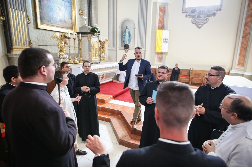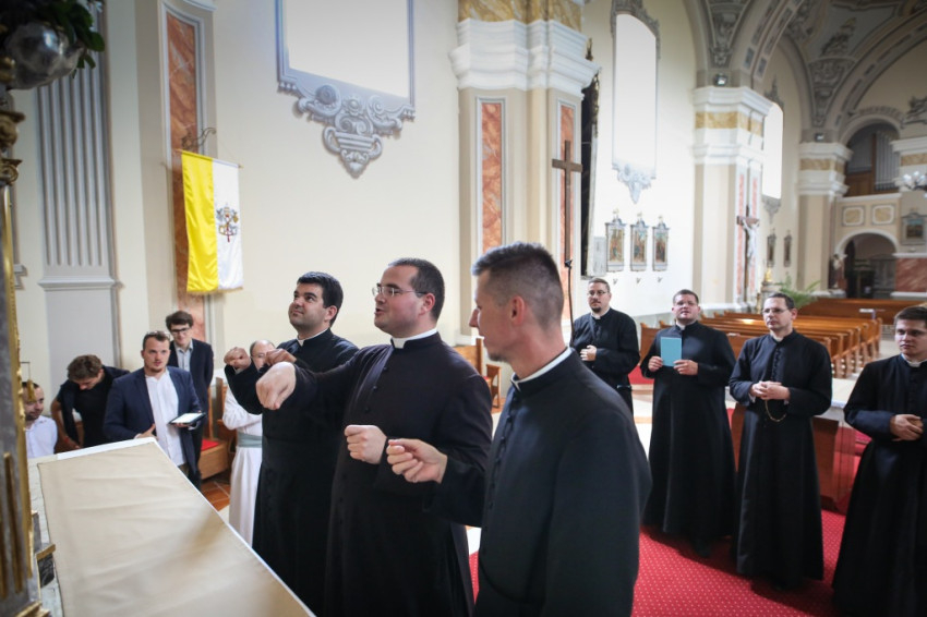 A konyhába visszatérve, mosogatás közben Aradi László bakonyszombathelyi plébánossal elegyedem szóba. Liturgiatörténetből doktorál, az apátnők megáldásáról írta a dolgozatát. A régi liturgia azért vonzza annyira, mert mint megtapasztalta, egyházunk kétezer éves kincsei leplezetlenül jelen vannak benne, és szimbolikus gazdagsága páratlan. Nem csak az intellektusnak szól: élni lehet benne. László kristálytiszta tükörnek tartja, amelyben megláthatjuk, hogy Isten milyen gyönyörű.