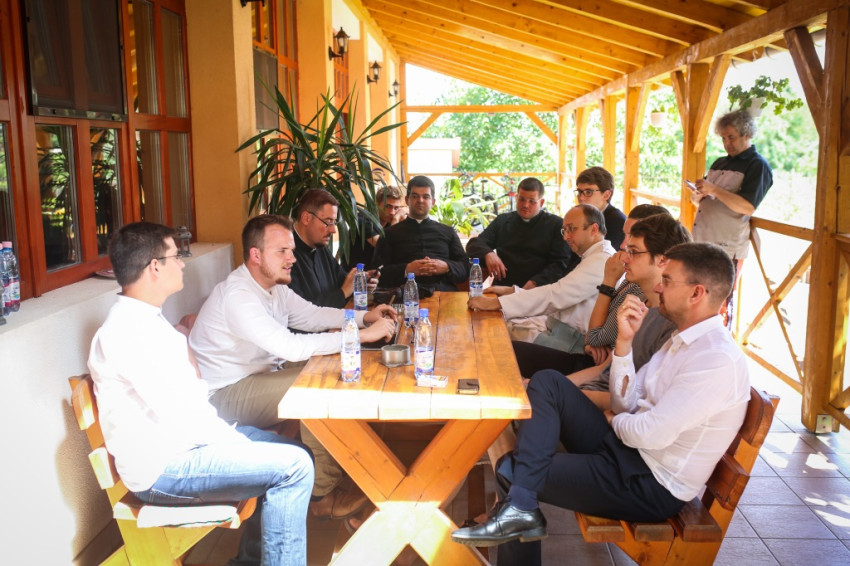 Amikor Papp László invitálására a plébániára érünk, az árnyas teraszon már élénk beszélgetés folyik. A szót itt is Kiss Bertalan viszi. A Juventutem Magyarországhoz tartozás feltételeiről beszél, amelyek nem túl szigorúak: havonta legalább egyszer részt kell venni egy régi rítusú misén, és mindennap imádkozni kell a Judica zsoltárt, más néven lépcsőimát. A közösség igyekszik mindenütt minél intenzívebben részt venni, belesimulni az egyházközség életébe, „hiszen egy hajóban evezünk: fontos, hogy egy irányba tegyük”, teszi hozzá Bertalan.