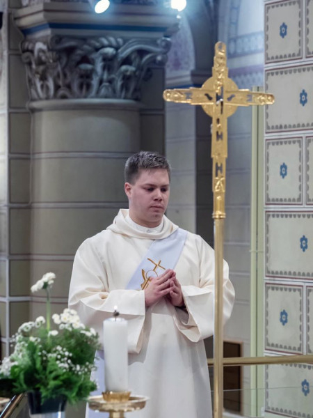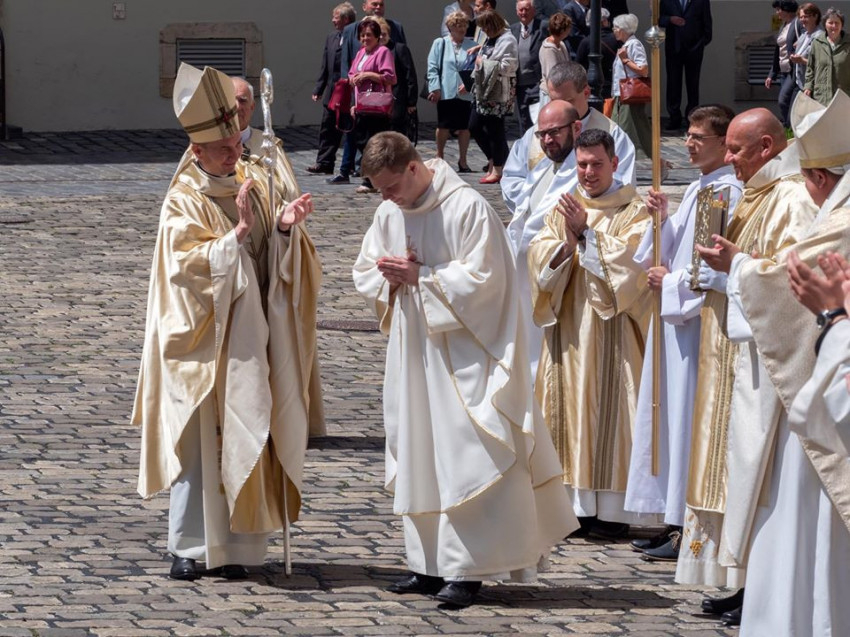 Végül Jézus Szentséges Szívének ünnepe kapcsán Ferenc pápa gondolataival bátorította a szentelendőt a főpásztor, miszerint a pap Krisztus módjára hálás szívű, irgalmas és készséges szívű, éber szívű, a papnak bátor és együttérző a szíve.