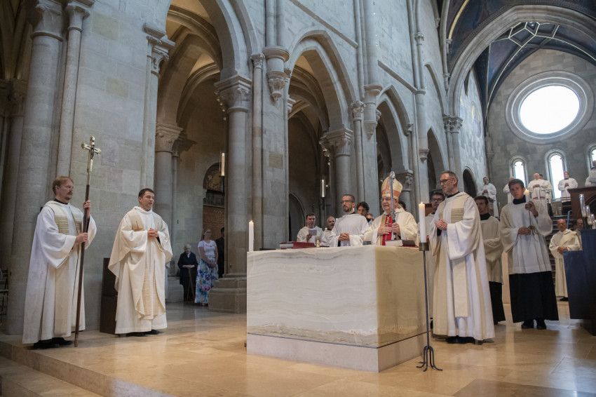 A liturgia elején az egybegyűlteket Hortobágyi Cirill főapát köszöntötte. Mint mondta, „mindannyiunk életében ott van az Úristen hívó szava, és az ő hívása ígéret. A hitből fakadó keresztény élet, a beteljesedő élet ígérete, a boldogságunk garanciája.” A papszentelést pedig ebből „a hitből fakadó keresztény életet” megerősítő alkalomnak nevezte.