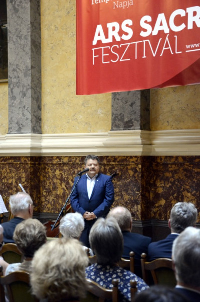 Szász Jenő köszöntője elején Jakab Antal erdélyi püspököt idézte, aki azt mondta, hogy a hit és a kulturális örökség kapcsolata olyan erős, mint az emberben a testé és a léleké. Örömének adott hangot, hogy az Ars Sacra Fesztivál, immár átlépve az anyaország határait, a szomszédos magyarlakta területeken is megerősíti keresztény gyökereinket, kultúránkat.