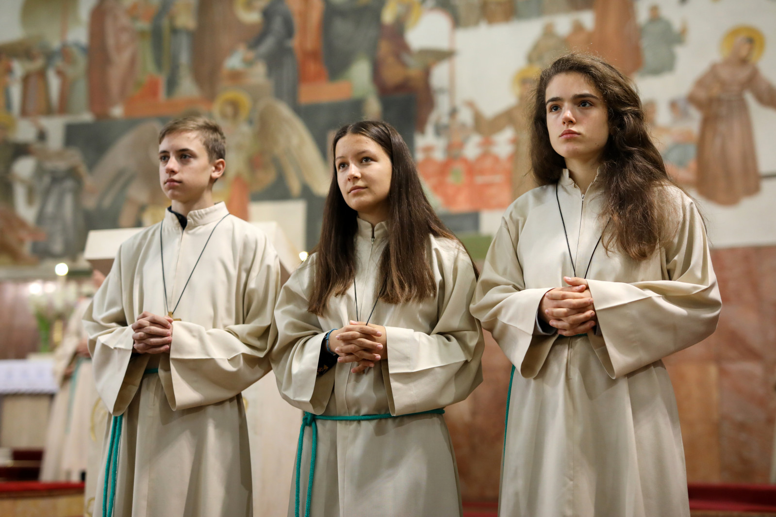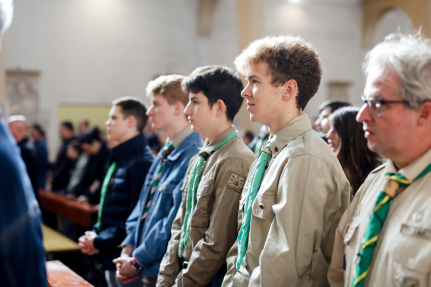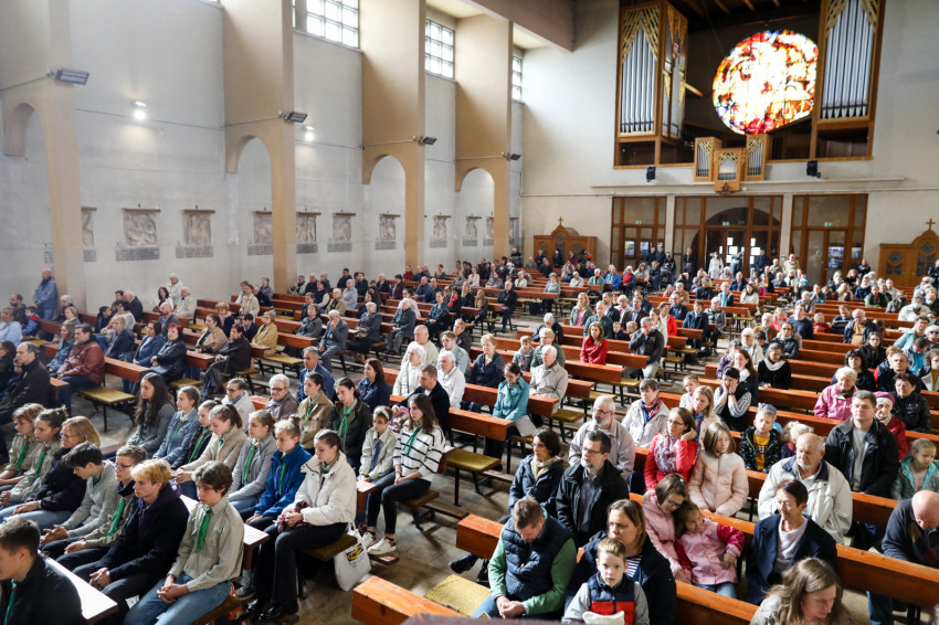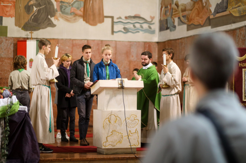 Közben gyülekeznek a hívek, helyet foglalnak a padokban a cserkészfiúk és -lányok. A sekrestyében egyre nagyobb a nyüzsgés, készülődés, rendhagyó ez a nap.