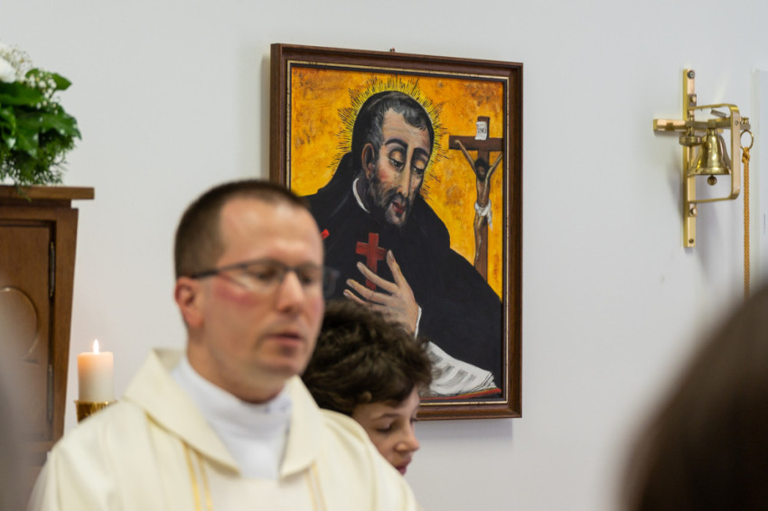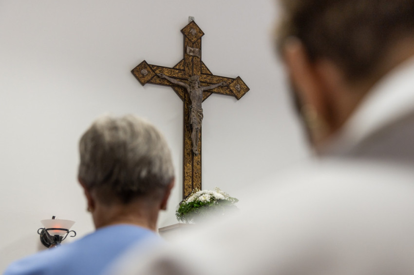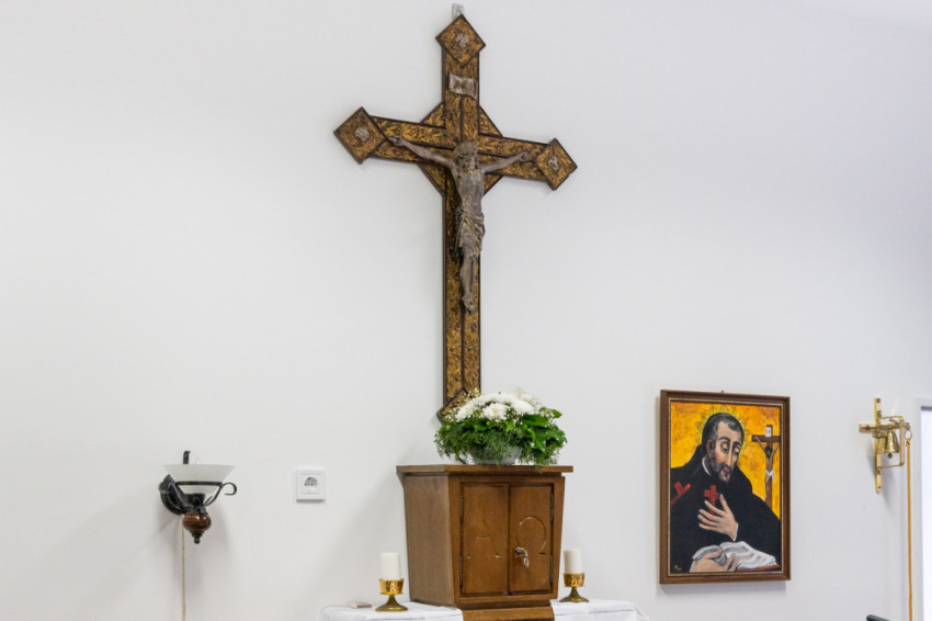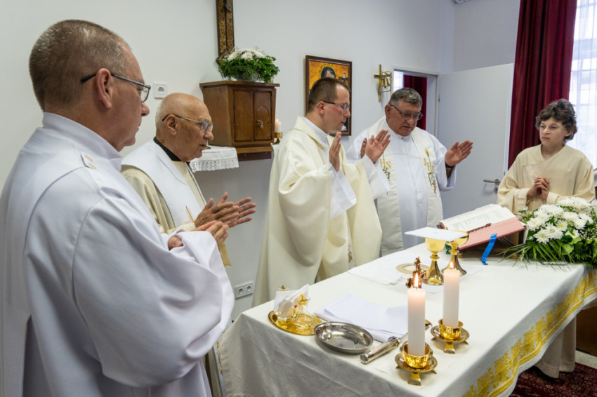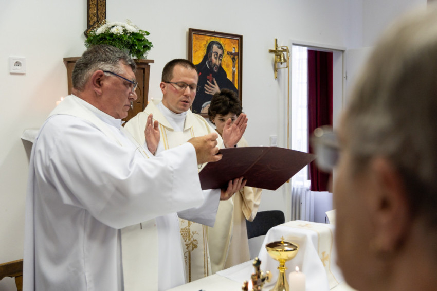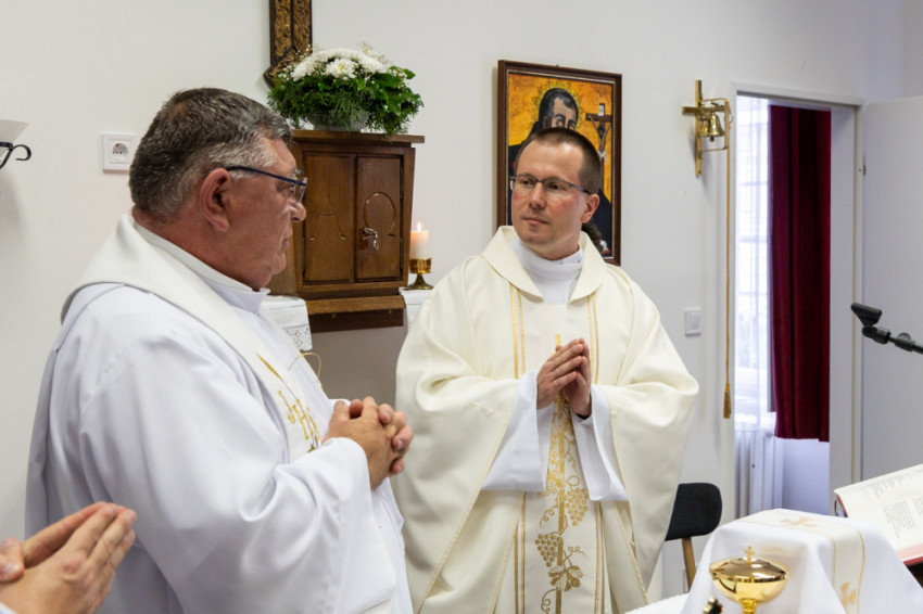 Az újonnan kialakított szakrális térben Máger Róbert vizet szentelt, majd a szentelménnyel megáldotta a kápolnát, meghintve annak oltárát és falait.