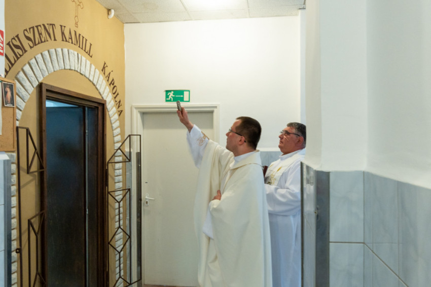 A Lellisi Szent Kamillról elnevezett kápolnát Máger Róbert püspöki irodaigazgató, a pécsi székesegyház plébánosa áldotta meg, szentmise keretében. Koncelebrált Kövesi Ferenc, a pécsi Szent II. János Pál-templom plébánosa, a kórház lelkipásztori szolgálatával megbízott pap és Mecséri István nyugalmazott lelkipásztor, kisegítő lelkész.
