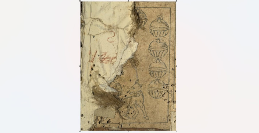 A sérülés mentén láthatóvá vált részen egy 16. századi játékkártyát sikerült a könyvtárasoknak beazonosítaniuk. Ez a Karnöffel elnevezésű, a 15. század elején Nördlingenben felbukkant, és később a teljes német nyelvterületen meghonosodott, rendkívül népszerűvé vált kártyajáték egy lapja, amit nem használtak; egy soha ki nem vágott és soha ki nem színezett darab.