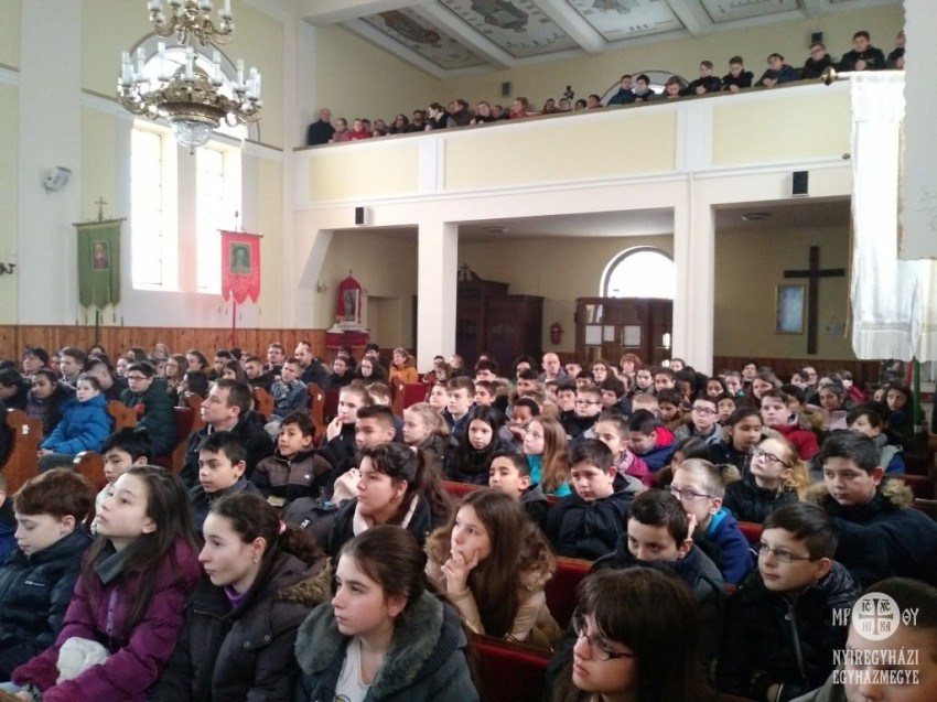 Másnap délelőtt a Széchenyi István Katolikus és Német Nemzetiségi Általános Iskola és a Móricz Zsigmond Görögkatolikus Két Tannyelvű Általános Iskola összesen mintegy hatszáz tanulója zarándokolt a templomba. Az alkalmi „hittanóra” keretében a keresztről és misztériumáról tanulhattak a diákok.