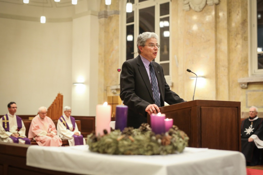 Jelenits atya a prédikációjában különös evangéliumi szakasznak nevezte a hallottat, mivel nem folyamatos elbeszélés része, hanem a teremtés és Jézus megtestesülésének leírása közé ékelődik. Az evangéliumok írásának idején Jézus születésének emléke nem élhetett elevenen, ez okozza, hogy voltak, akik inkább nyilvános működésének kezdetére helyezték a hangsúlyt. A karácsony előtt evangéliumi szakaszokon átdereng valami, derengésükben sejtetnek inkább, mint hogy reflektorfénybe állítanák, amit közölni akarnak. Hogy pontosan azok a szavak hangzottak-e el, amelyeket leírnak, nem állapítható meg. A hit Isten személyes közelébe vezet, a mi eszközeinkkel tökéletesen nem megragadható módon. „Derengő gazdagság” jellemzi; hit, és nem tudás, és amikor átadjuk, ezt az egészen meg nem ragadható voltát is át kell adnunk. Mint olyat, amit mi magunk is el-elvesztünk, aztán mindig újra megtalálunk. Isten jelen van köztünk, de megfoghatatlanságával együtt van jelen. Ahogyan Keresztelő János tanúságot tett Jézusról, nekünk is tanúságot kell tennünk egymásnak – a mély hit ámuló bizonyosságával. Jó lenne, ha az ajándékok nem válnának ennél fontosabbá, ha a karácsony örömhíre nem csupán a keret lenne az ajándékozáshoz. Jelenits atya ezen a ponton felidézte egy emlékét. Sok-sok évvel ezelőtt felkereste egy egykori diákja, hogy elmondja: amikor Németországban kisebb vétség miatt két hónapra leültették, hogyan talált rá ismét a Bibliára (az volt a német börtönben az egyetlen magyar nyelvű könyv), hogyan ébredtek fel benne az egykori hittanórák emlékei, és váltak öröm forrásává számára. Olyannyira, hogy végül kifejezetten hasznosnak érezte azt a börtönben töltött két hónapot.