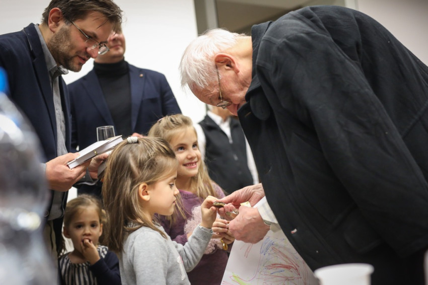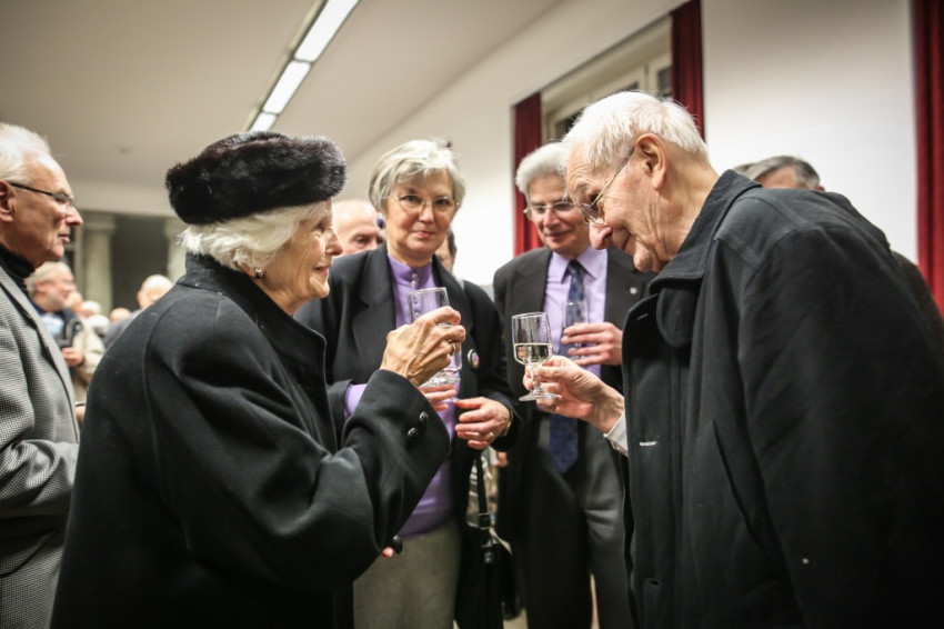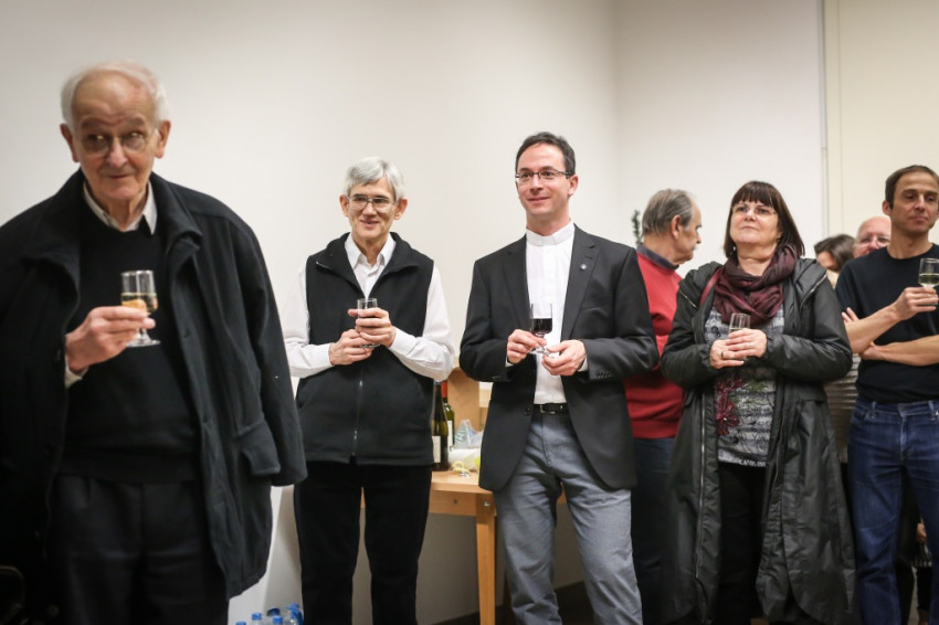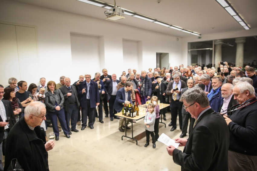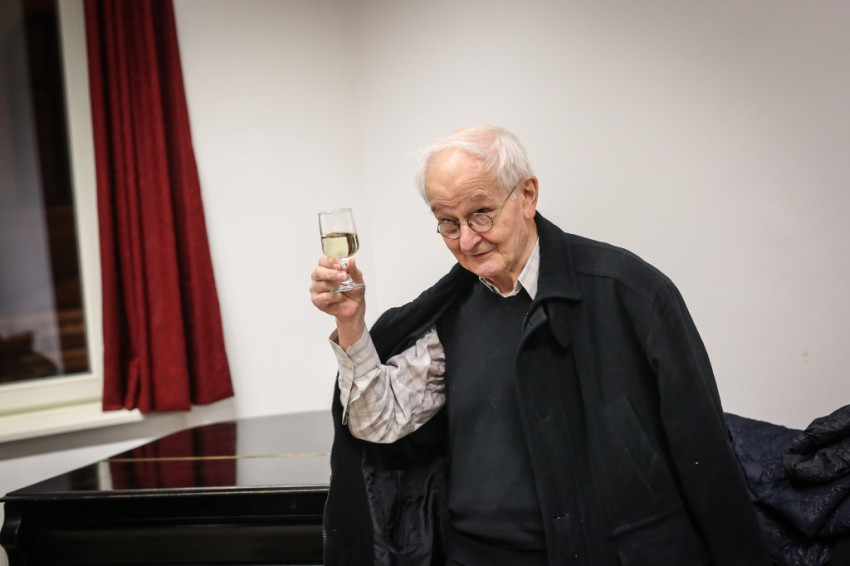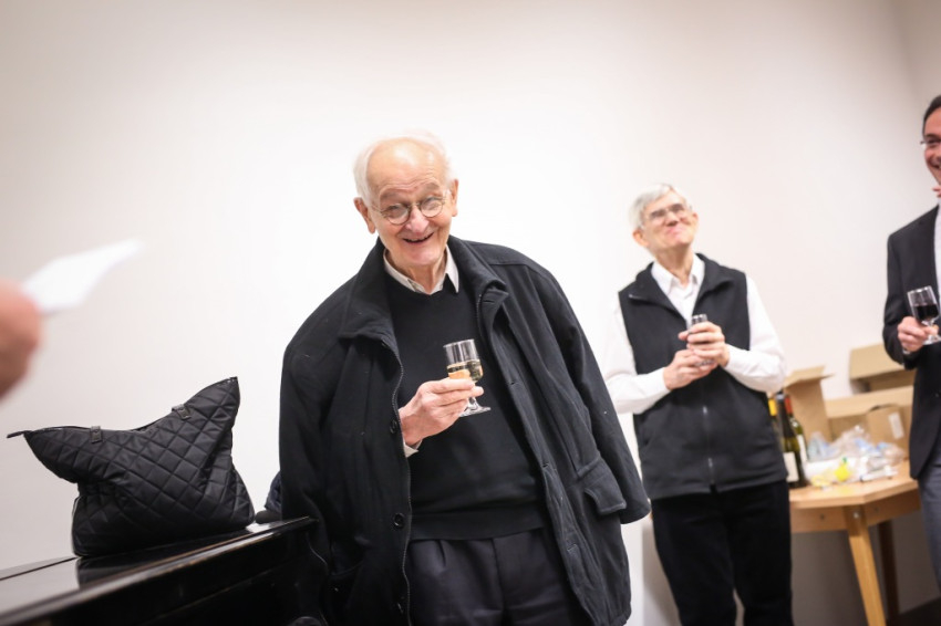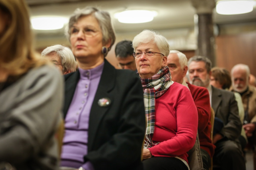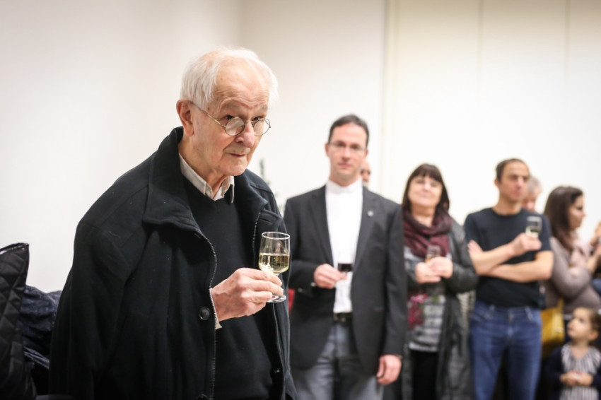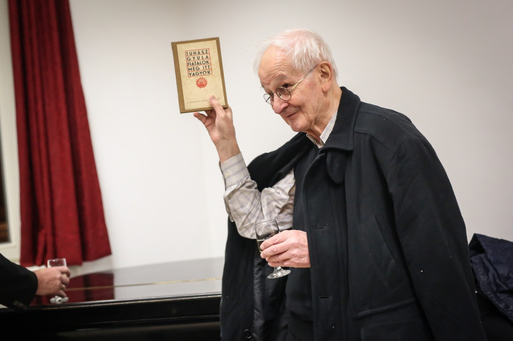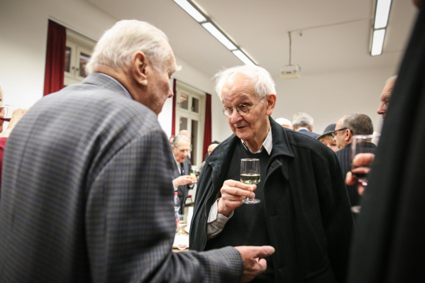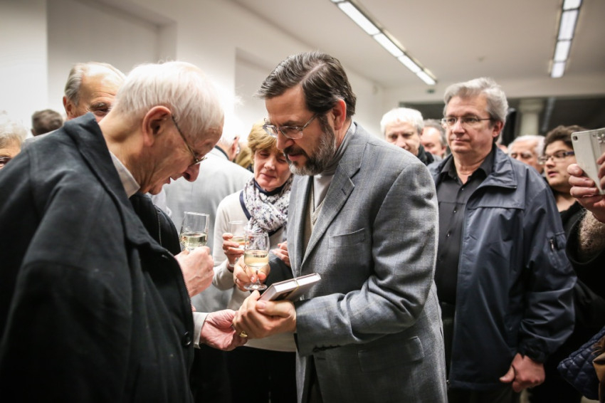 Aztán kitört az ünneplés, a gratulálók hosszú sorban álltak Jelenits atyához. Pár szót beszéltem a fiatalos Farkas Zsolttal, aki egykor az ünnepelt osztálytársa volt, és – mint szerényen megjegyezte – még csak nyolcvannégy és fél éves. A derű, amelyet a tekintetében láttam, elgondolkodtat az életkorokra vonatkozó sztereotípiáinkról. Az öröm vasárnapján mintha minden ránc halványabb lenne kissé, minden arcon.
