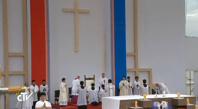Ferenc pápa angolul mondta el homíliáját, amelyet szakaszonként fordítottak koreai nyelvre. A szertartáson jelen lévő fiatalok a földrész 22 országát képviselték.