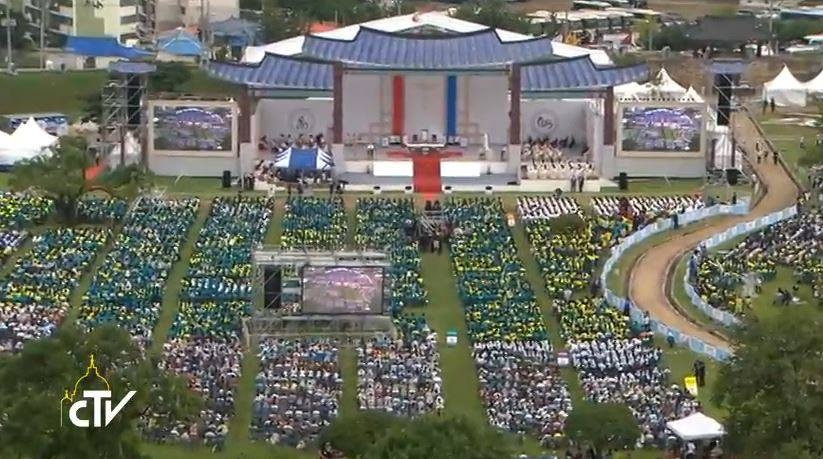A végső áldás után Tedzson püspöke, Peter Kang U-il üdvözölte a pápát. Ezek a fiatalok, akiket ugyanaz a hit egyesít, különböző környezetből érkeztek, leküzdve a nemzetiség, a nyelv különbségeit, hogy megerősítsék testvériségüket Krisztusban, és közösen ünnepeljék és dicsérjék Istent. Mivel ez alkalommal Ferenc pápa sok időt töltött velük, az ázsiai fiatalok a kegyelem megismételhetetlen pillanatait élték át: a remény magvát jelentik a jövő számára.
