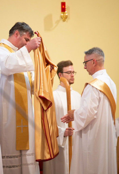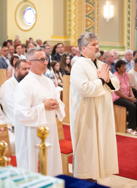 A főpásztor kézrátétele és felszentelő imája következett; majd az új diakónusok magukra öltötték a stólát és a dalmatikát, mely a szerpapok viselete.