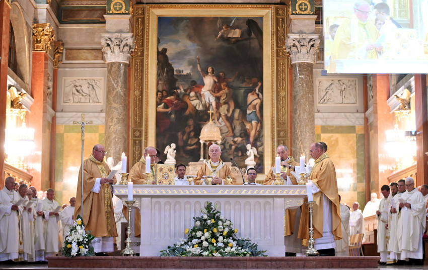 A nuncius köszöntője után a főpásztor áldást mondott, s meghintette szenteltvízzel a bazilika falait. Szentbeszédében Szent Mihály közelgő ünnepe kapcsán a Gonosszal vívott harcról, s az angyalokról elmélkedett.