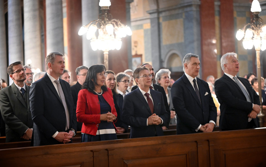 Felidézte: januári újévi körlevelében az épület homlokzatán olvasható felirattal – „Venite Adoremus Dominum” (Jöjjetek, áldjuk az Urat!) hívta a híveket, akik nagy számban jelentek meg az ünnepi alkalmon. A főpásztor köszöntötte Michael Wallace Banach apostoli nunciust, a megjelent érseket, püspököket, papokat és szerzeteseket, a közélet vezető szereplőit, köztük Semjén Zsolt miniszterelnök-helyettest és Lázár János építési és közlekedési minisztert.