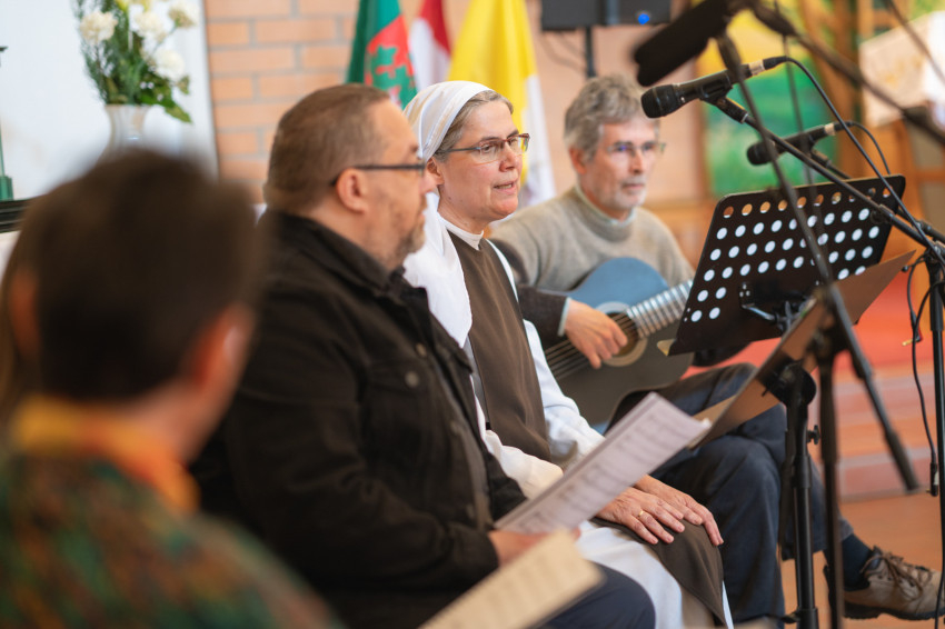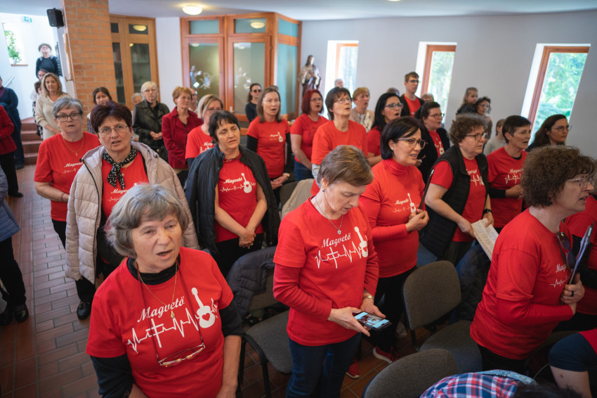 Az elmélkedés után a Nyolc Boldogság Közösség vezetett szentségimádása, majd szentmise következett, melynek zenei szolgálatát a Magvető közösség végezte.