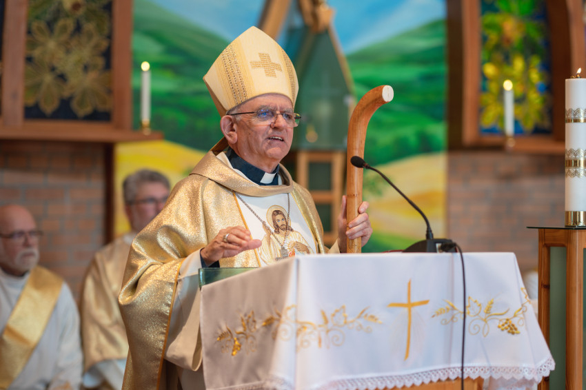 A szentmise homíliájában Varga László püspök a tékozló fiú példabeszéde kapcsán folytatta elmélkedését: a fiatal fiú hazaér, és az apa ünnepet ül, és mikor a mezőről hazaérkezve ezt meglátja az idősebb fiú, megsértődik, és nem akar bemenni. Az apa kimegy elé, beszélgetnek, és elhangzik egy mondat, amely számomra az evangélium szíve közepe: „Fiam, te mindig velem vagy és mindenem a tiéd.” Egyikük sem tudta felfogni, hogy mit jelent a minden. A fiatalabb nem tudott mit kezdeni a mindennel, ezért elkérte az örökségét, és elindult a vélt szabadság útján. Szeretetmorzsákkal kellett beérnie, eltékozolt mindent. Az idősebb sem tudott mit kezdeni a mindennel. Számító magatartás jellemezte, mely mögött a béres lelkülete van: ha szót fogadok, dolgozom, akkor nekem jár a szeretet. Ki akarta érdemelni azt, ami ingyen van.
