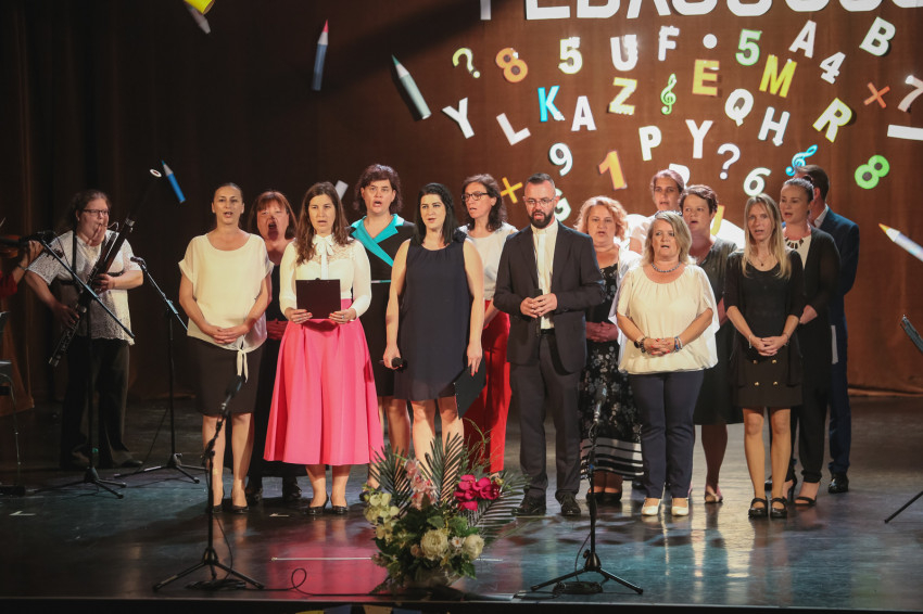 Az iskola énekkara Nemes Réka tanárnő vezetésével Sillye Jenő Múlnak az évek című dalát adta elő, majd Varga László megyéspüspök mondott köszönetet a pedagógusoknak.