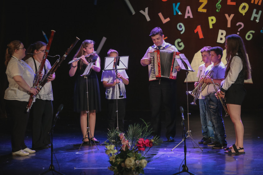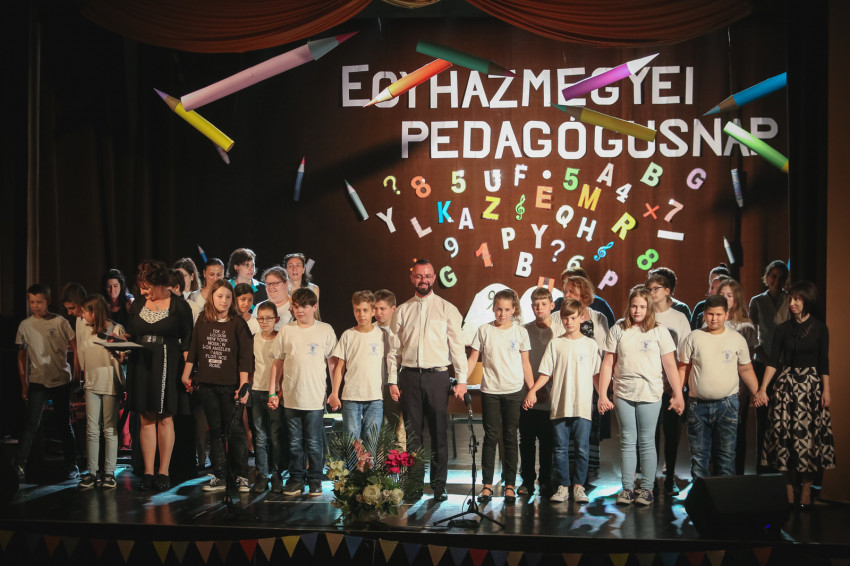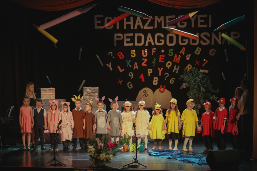 Ezután Sternóczky László vezetésével az általános iskola zeneiskolai növendékei adtak elő fúvós hangszeren egy dalválogatást, majd két tanuló a pedagógusokat köszöntötte az ünnep alkalmából.