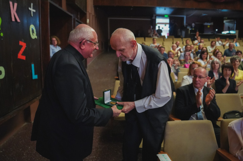 „Nagy örömömre szolgál, hogy két év kihagyás után ismét együtt ünnepelhetünk. Ünnepeljük a személyes találkozást, a pedagógusnapot, a tanév végét” – fogalmazott Sziliné Kardos Erzsébet, a helyi Egyházmegyei Katolikus Iskolák Főhatósága (EKIF) igazgatója, aki elmondta: a Kaposvári Egyházmegye minden évben megköszöni a pedagógusok és a nevelési-oktatási intézményekben dolgozók munkáját, amit díjak, jutalmak átadásával is kifejez. Idén Varga László megyéspüspök a Magyar Katolikus Püspöki Konferencia által alapított országos kitüntetést, a Szent Gellért-díjat, illetve püspöki oklevelet adott át.