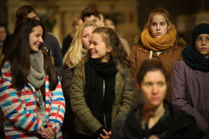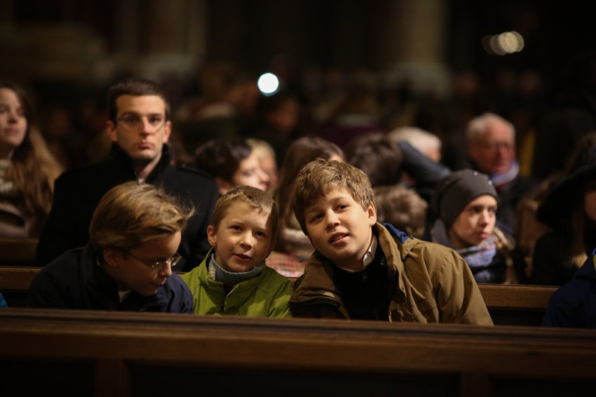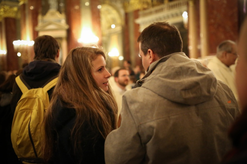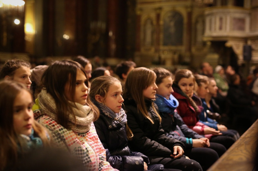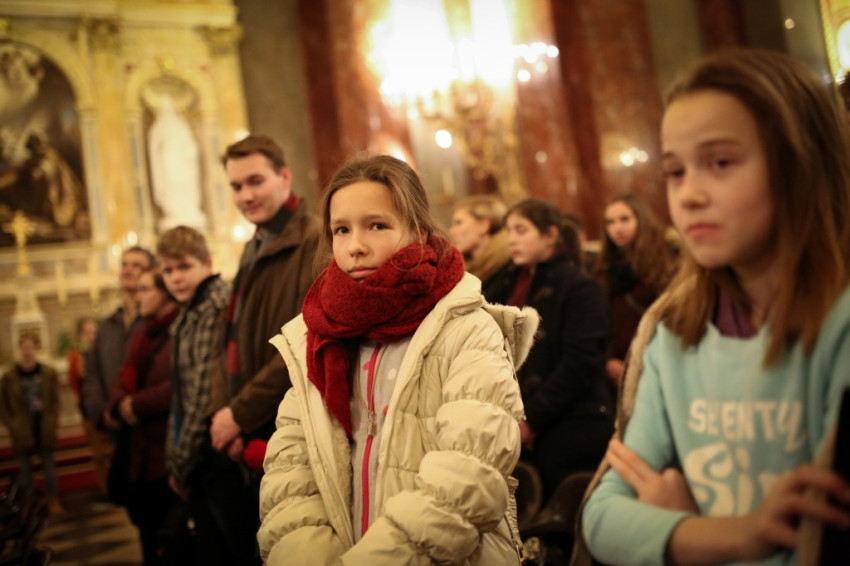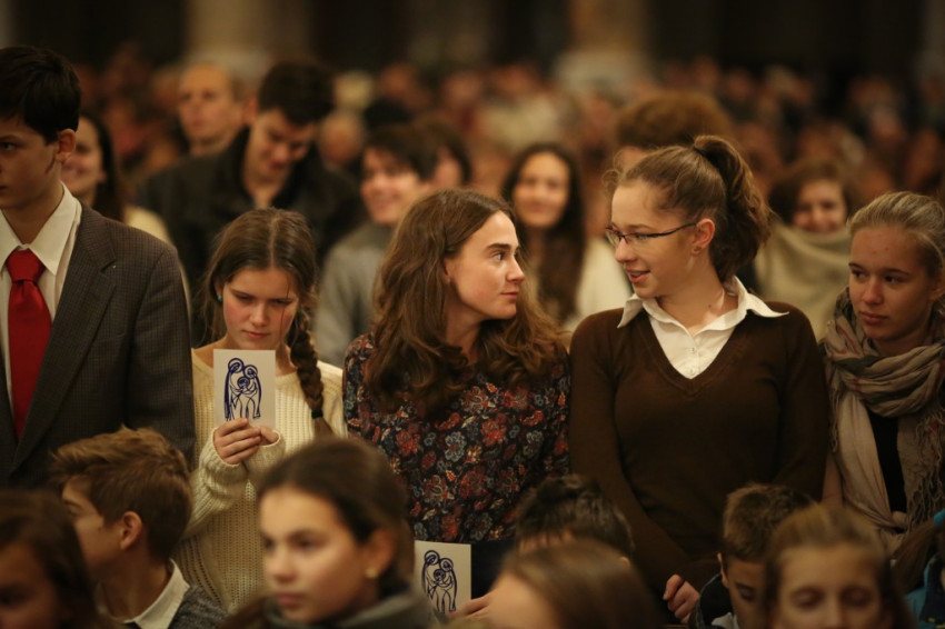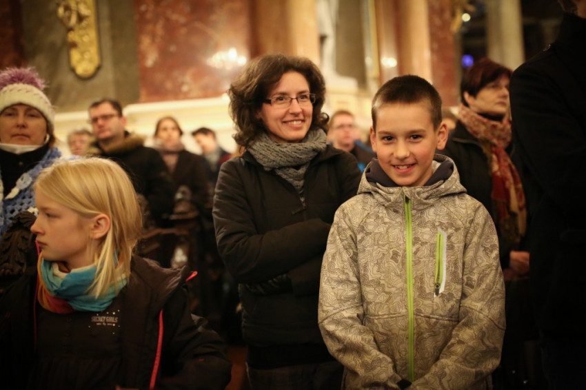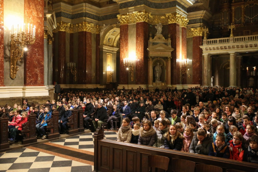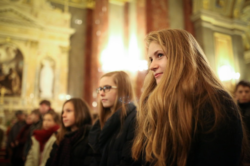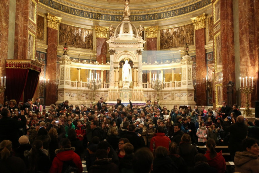 „December 8-án »családi ünnepére« gyűlik össze a Regnum Marianum a Szent István-bazilikában” – mondja Somogyi Sándor, a Regnum házfőnöke Palánki Ferencet üdvözlő beszédében, a püspök pedig a sok-sok eleven gyerek láttán az egyház fiatal arcáról beszél. Egy mosolygó arcról, mely tele van energiával. „Csupa dal, csupa tűz, csupa élet.” Olyan misén vagyunk, amelyen nem pisszegik le a gyerekeket, ha kissé hangosabbak a kelleténél. Sőt örülnek, hogy eljöttek, és meghatódnak, mert az egyház reményét látják bennük.