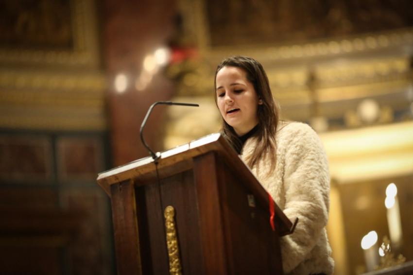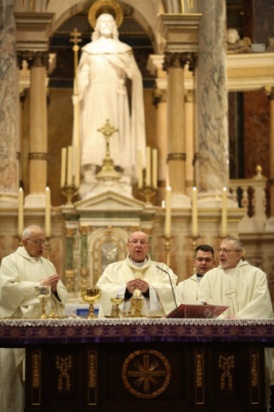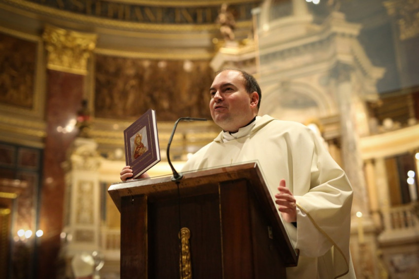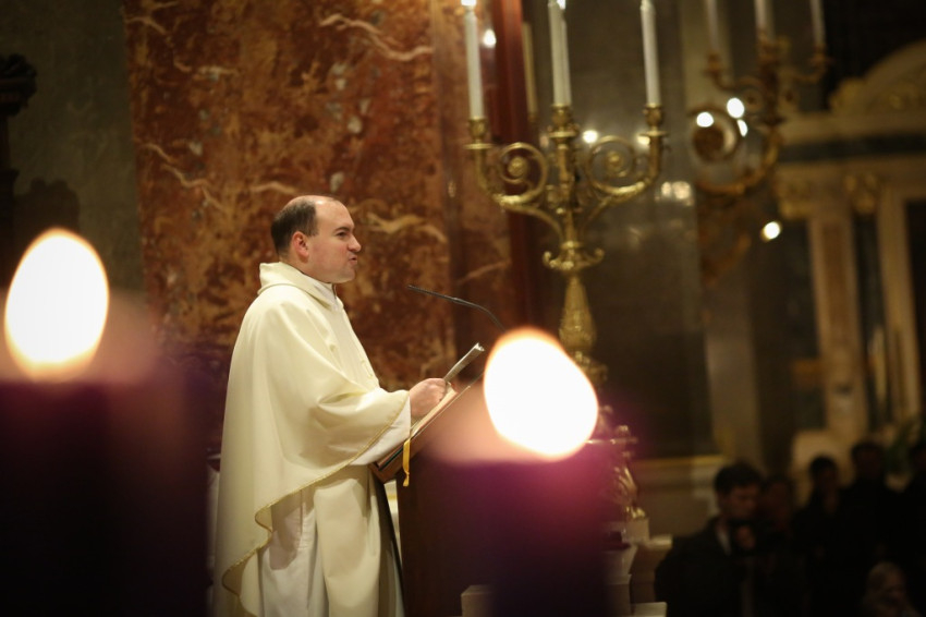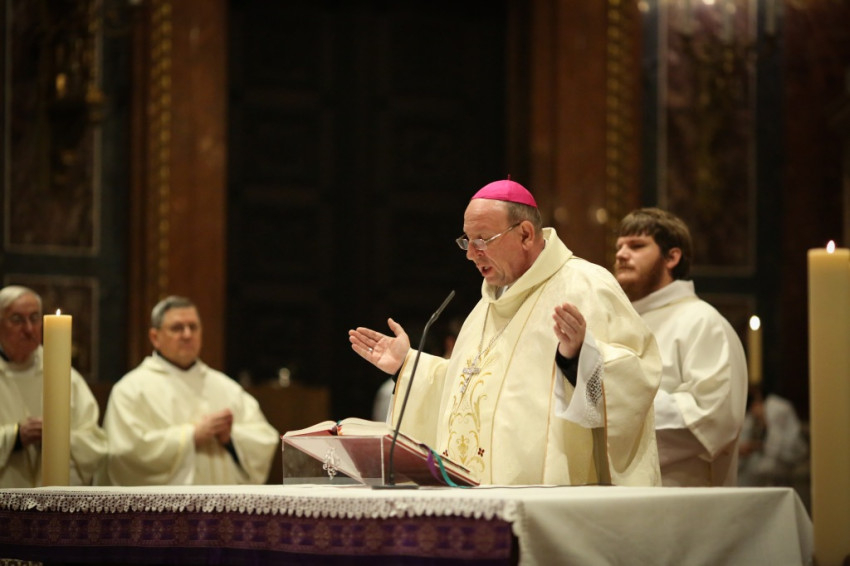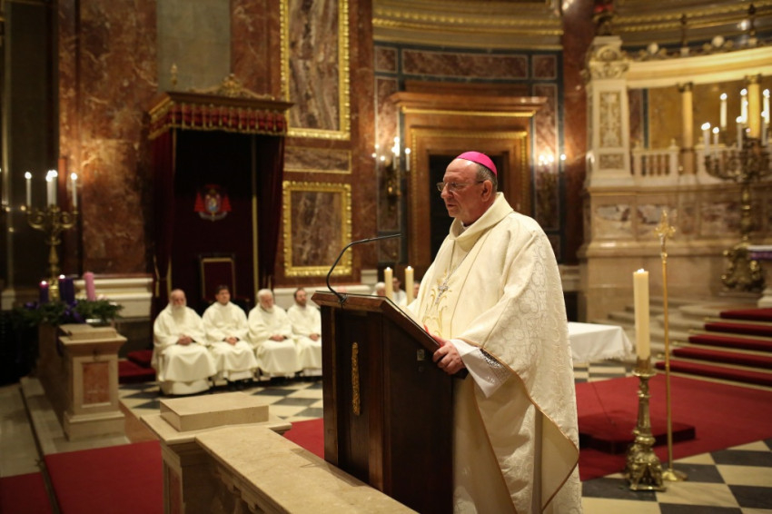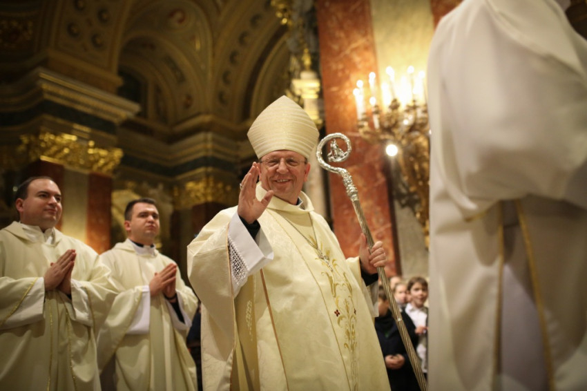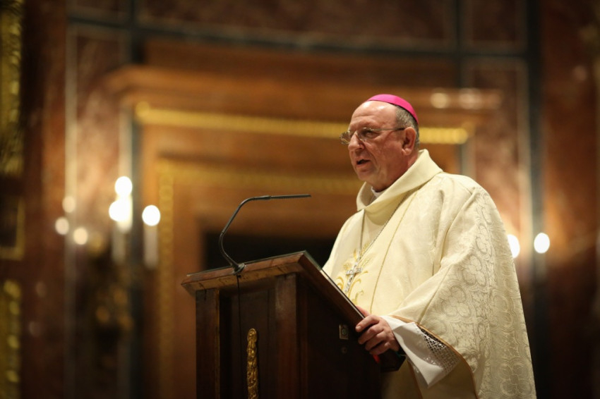 „Mária személyében Ádám és Éva óta először jelent meg a bűn nélküli ember a földön – kezdi beszédét a püspök –, akit nyitottság és belső csend jellemzett. Olyan csend, amelyben Isten szólni tudott. Egy titokra volt ugyanis nyitott, és a mindent meghaladó szeretetre volt csendje. Legyetek ti is ilyen nyitottak. Ez az ima révén lehetséges. Nemcsak imák mondása révén, hanem a csendünk révén is, amelybe Isten beléphet, hogy elmondja, mit kér tőlünk. Mária másik nagy erénye az alázatosság volt. Nem tudta, mi fog következni, de elfogadta Isten rendelését. A harmadik vonása pedig, ami miatt tiszteljük, a készsége: az, hogy kész volt Isten akaratát teljesíteni. Az angyal üdvözli Máriát, akit Isten küldött hozzá, így általa Istennel is találkozik. És még valakivel: önmagával. Méghozzá úgy, amilyennek Isten látja őt. És Isten teljesnek látja őt. Ahogyan bennünket is annak akar látni, mert látja bennünk a szentté válás lehetőségét.