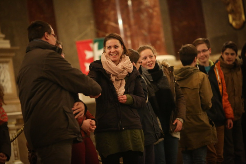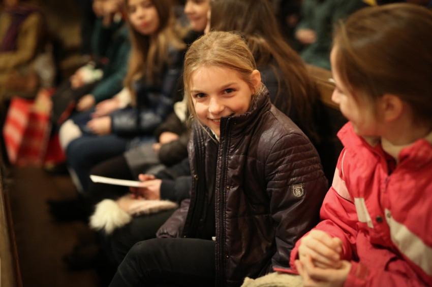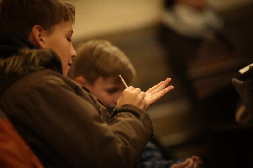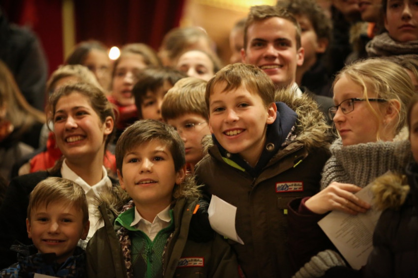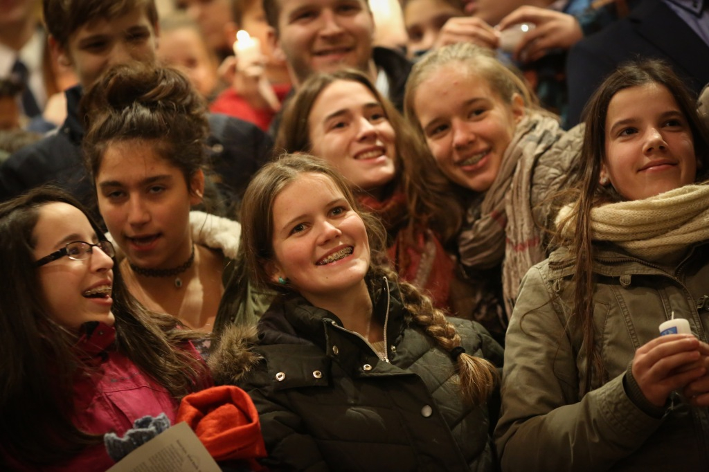 Aztán „kitör a káosz”: a lelkes, mobiljukkal fényképező szülők és a hivatásos fotósok felsorakoznak, hogy a százhatvanhat fogadalmas gyerekről csoportképet készítsenek. A fényképezendő gyermeksereg azonban hullámzik, hömpölyög, nehezen áll össze akár pár másodpercre is fényképezhető alakzatba. Többen gyertyát gyújtanak közülük, így a fotózás vége felé olyanok, mint egy fekvő, mocorgó karácsonyfa. Az eleven, fiatal egyház gyertyái lobognak a kezükben.
