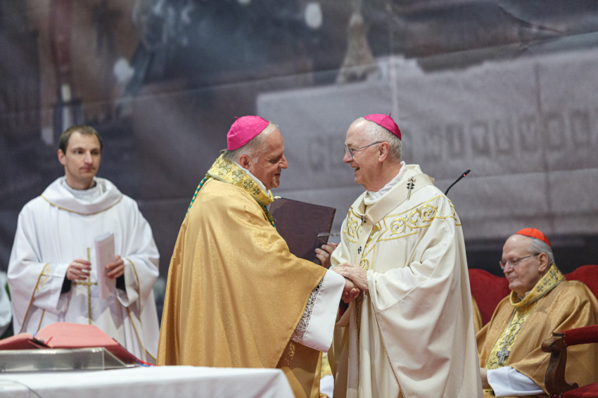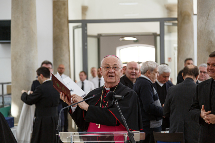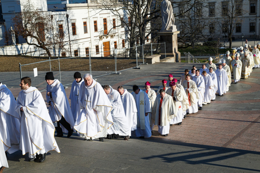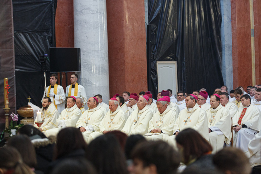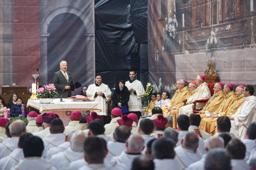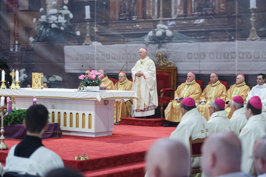 Veres András győri megyéspüspök, a Magyar Katolikus Püspöki Konferencia elnöke kiemelte, a püspöki kar tagjait a szolgálat gyűjtötte egybe, s így végzik feladatukat. Felidézte: Szent II. János Pál pápa több mint 30 esztendeje maga mellé hívta Ternyák Csabát, hogy a földi egyház vezetésében részt vállaljon, akinek püspöki jelmondata – „Ipsi gloria in saecula!”, azaz „Dicsőség neki mindörökké!” – pontosan utal küldetésére.