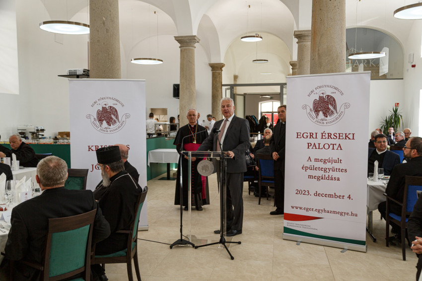 A szentmise után az ünnepség a Pátriárka étteremben folytatódott, amely a palotaegyüttessel együtt újult meg. Ficzek László általános helynök, az Érseki Vagyonkezelő Központ igazgatója a fejlesztések sorát is bemutatva elmondta: 2016-ban adták át az Egri Érseki Palota Látogatóközpontot, s ennek az évnek a végén további támogatások érkeztek a kormánytól, amelyek lehetővé teszik a beruházások folytatását.