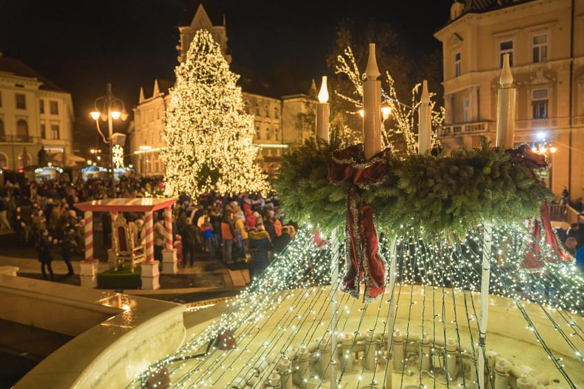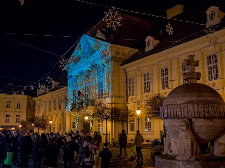 Veszprémben idén új helyszínen, az Óváros téren állították fel a város és az érsekség közös adventi koszorúját.