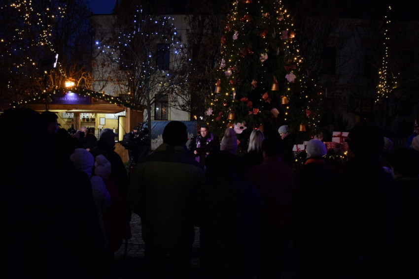 A beszédek után Modri Györgyi, a Veszprémi Petőfi Színház művésze mondott verset, majd meggyújtották az adventi koszorú első gyertyáját, amelynek fényében az összegyűltek közös imádsággal és énekkel zárták az ünnepi perceket.